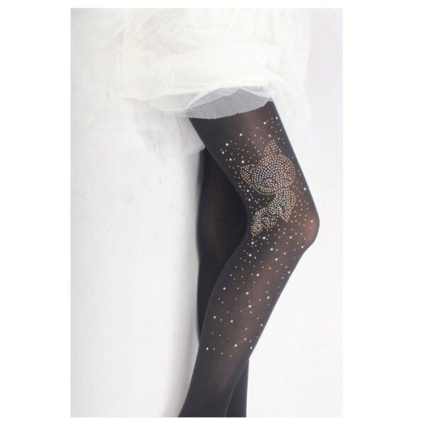 タイツ・レギンス / 【送料無料】 ラインストン付きタイツ ラインストン付きトレンカ キラキラ 80デニール レディース 蝶々柄 フリーサイズ トレンカ ブラック ベージュ ラインストン付き スワン柄 ハイヒール柄 狐柄 蝶蝶柄 ラインストン タイツ ストン付き タトゥー タトゥー柄 パーティー ビジュー付き ハロウィン コスプレ ストン ビジュー 宝石 美脚 黒 black ストッキング 肌色 ベージュカラー ベージュ ブラックストッキング 鴨柄 狐 蝶 スワン ハイヒール キツネ 蝶々