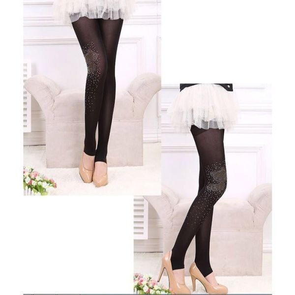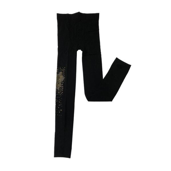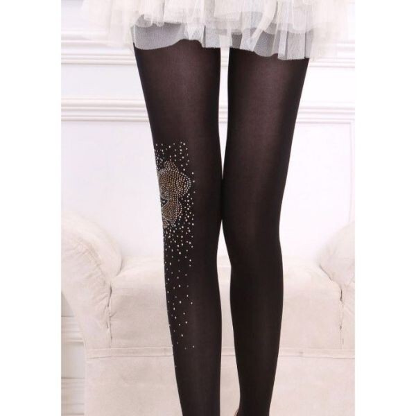 ラインストン付きトレンカ キラキラ 80デニール レディース フリーサイズ ブラック 狐柄