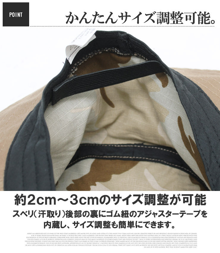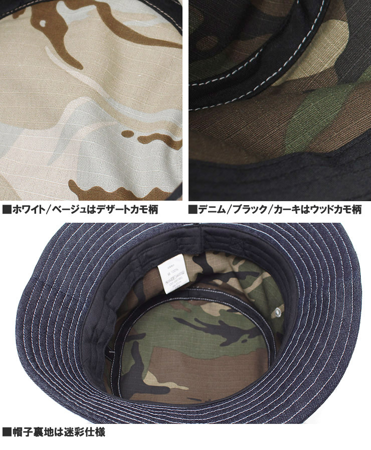 | 商品説明 | 裏地がカモフラ柄のバケットハットです。 |
