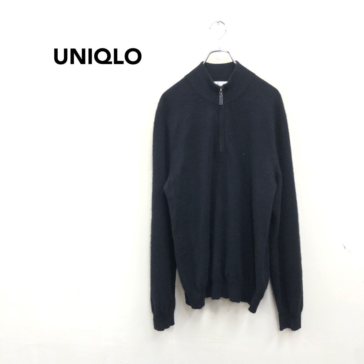 2N1601-Y◆UNIQLO ユニクロ ハーフジップカシミヤニット ハイネック 長袖セーター ハイゲージ 無地 メンズ◆size XL ブラック カシミヤ100%