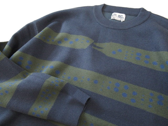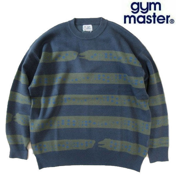 ジムマスター★GYM MASTER【ジャガードニット ウツボーダー クルーネック】ジャガードセーター G621797 56/ブルーグレー XLサイズ