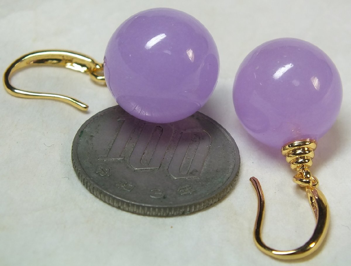 | ▲▽■龍香堂■ミャンマーラベンダー翡翠15mm玉ピアス即決yor*△▼ | |