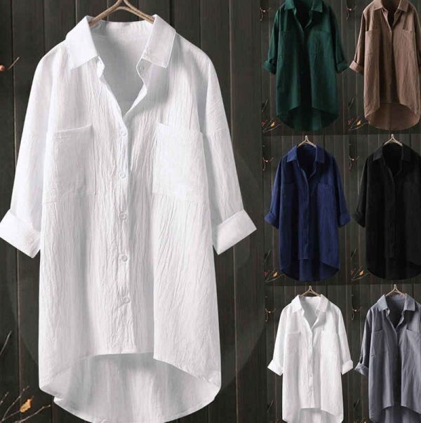 ゆったり 秋 冬 S~2XL サイズ秋 ナチュラル 素敵な 純色 無地 綿麻 大きいサイズ 長袖 シャツチュニック 白