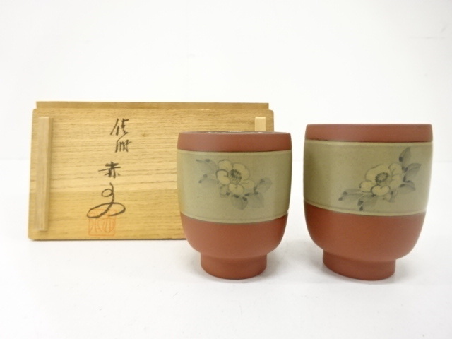 佐渡無名異焼 人間国宝 御題 伊藤赤水造 夫婦湯呑 (AAAJ1DHP-024)
