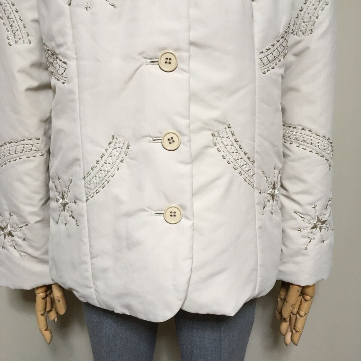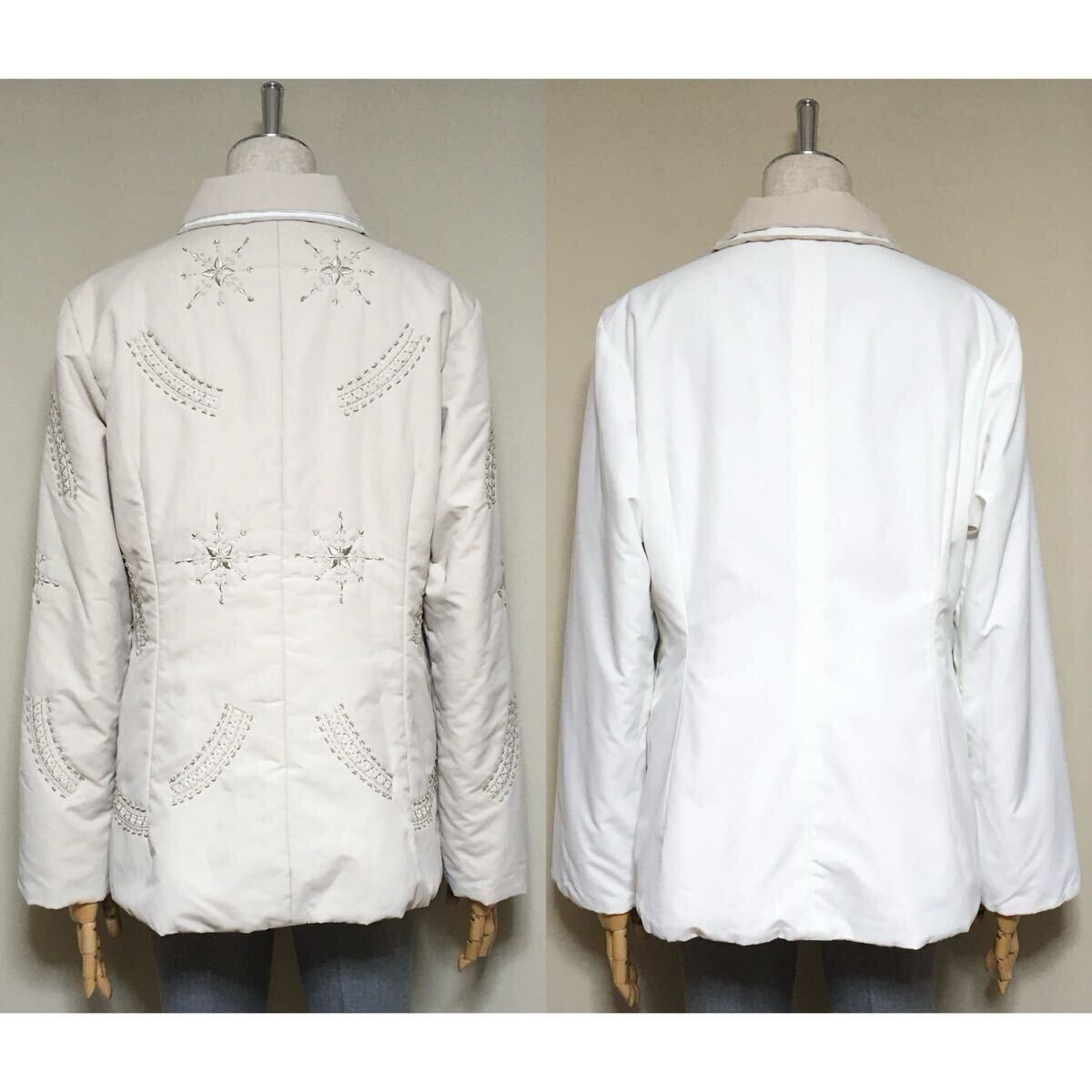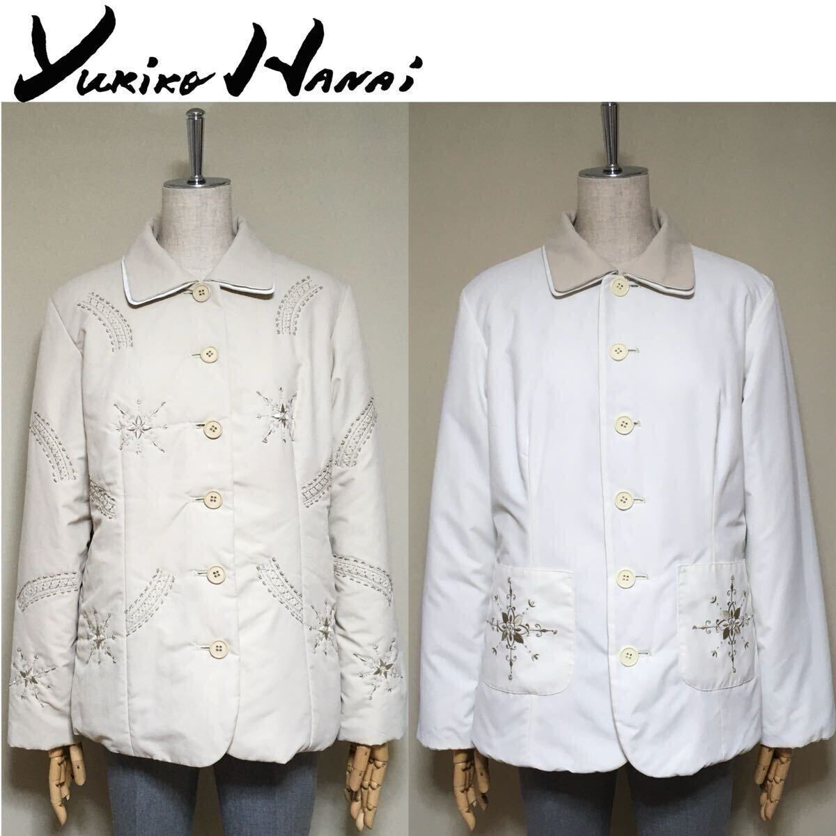 【Yukiko Hanai】ユキコハナイ 雪の結晶 立体刺繍 リバーシブル 中綿ジャケット サイズ10/L相当 ベージュ×ホワイト系 レディース アウター
