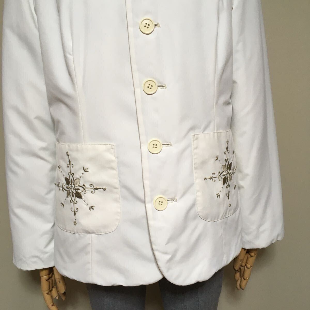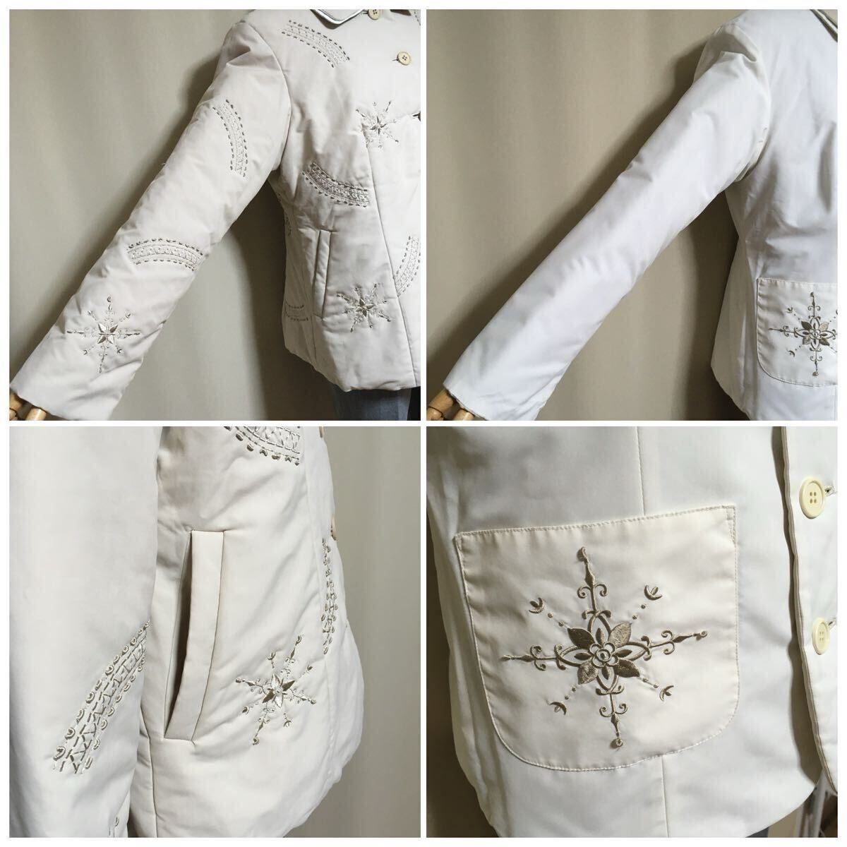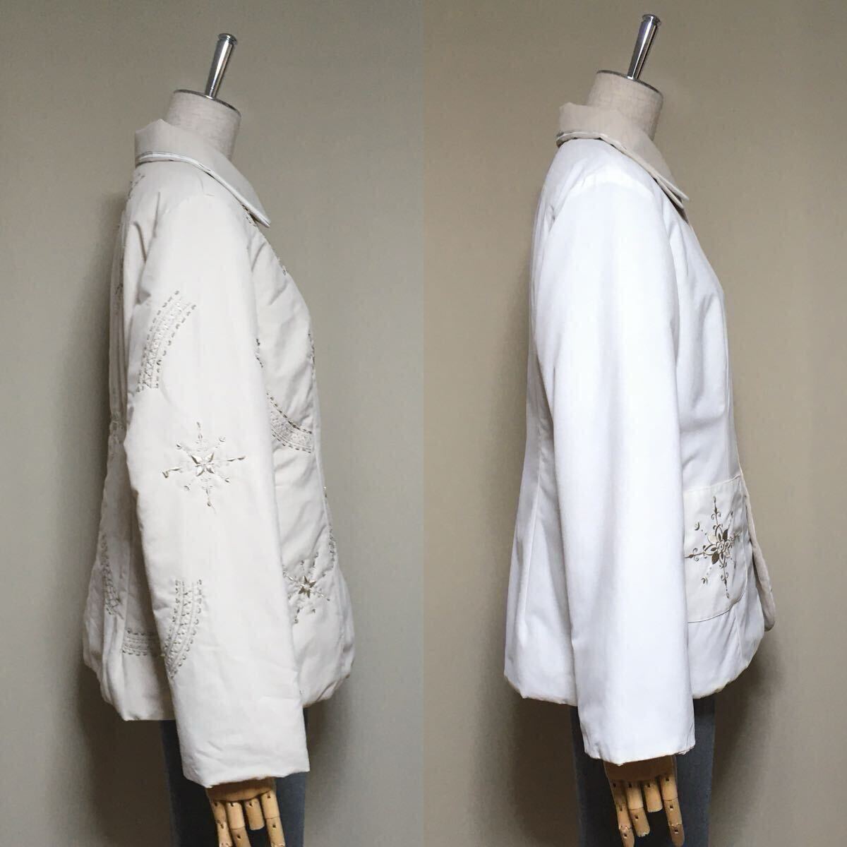 【Yukiko Hanai】ユキコハナイ 雪の結晶 立体刺繍 リバーシブル 中綿ジャケット サイズ10/L相当 ベージュ×ホワイト系 レディース アウター