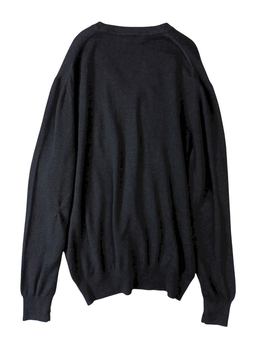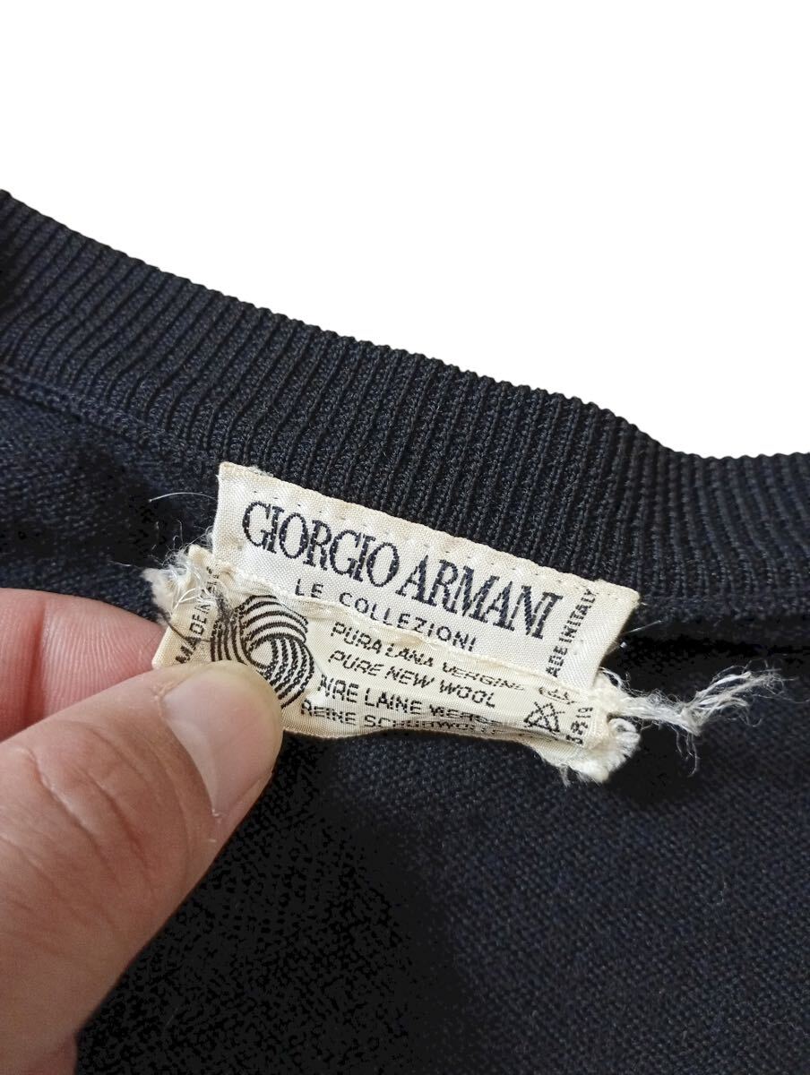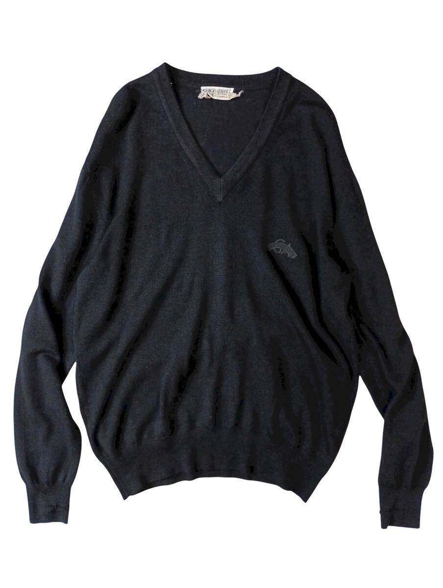 (D) イタリア製 GIORGIO ARMANI アルマーニ ロゴ刺繍 Vネック ウール ニット ブラック セーター