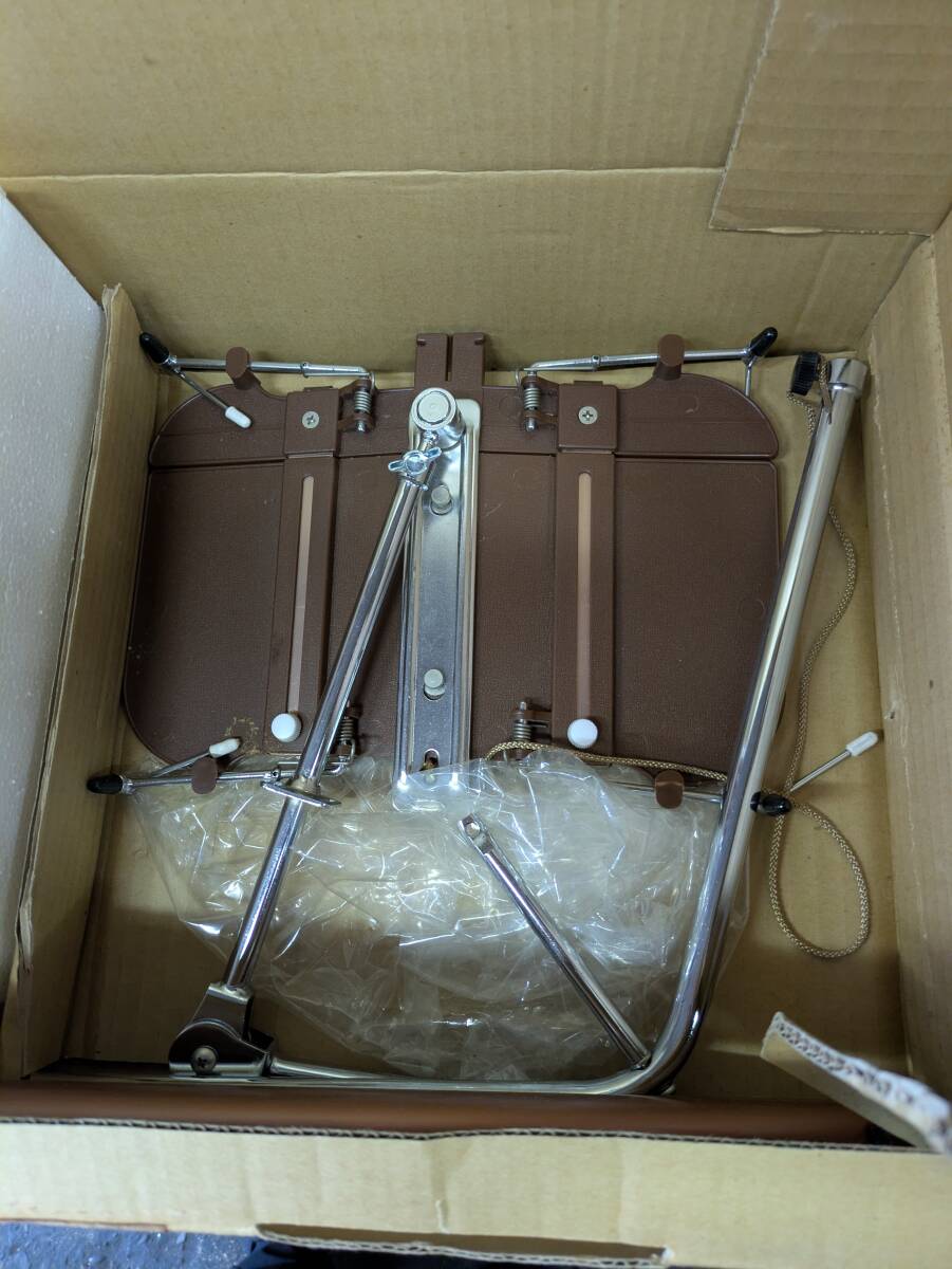 長期保管品の読書スタンドになります。撮影の為開封しました。箱は汚れ切れ等あります。点灯確認はできておりません。ノークレームでお買い上げの方にお譲りいたします。