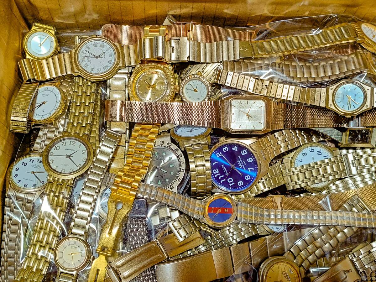 7.34kg 新品同様など 大量 腕時計 ブランド ゴールドカラー GUCCI CASIO CITIZEN SEIKOなど Lot Set Mixed まとめ セット 動作未確認 V37