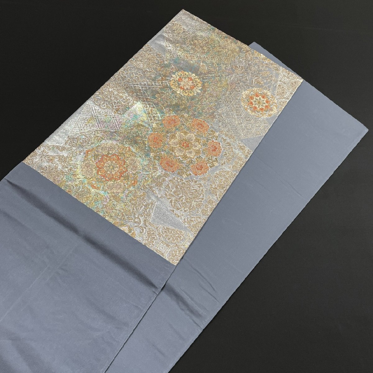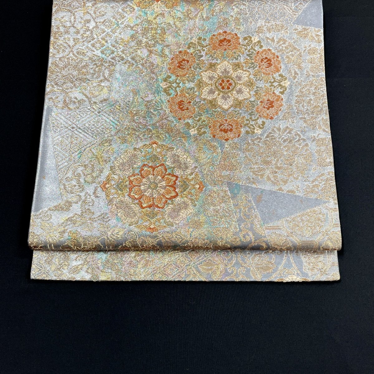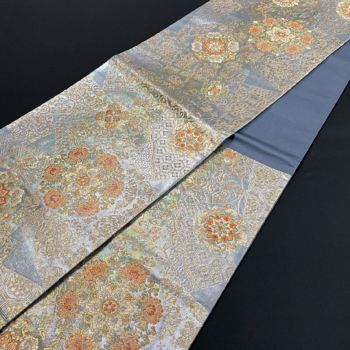 着物月花 引箔 華文様 袋帯 六通柄 正絹 金銀糸 ob7587