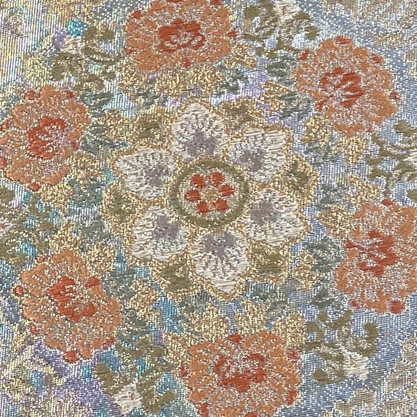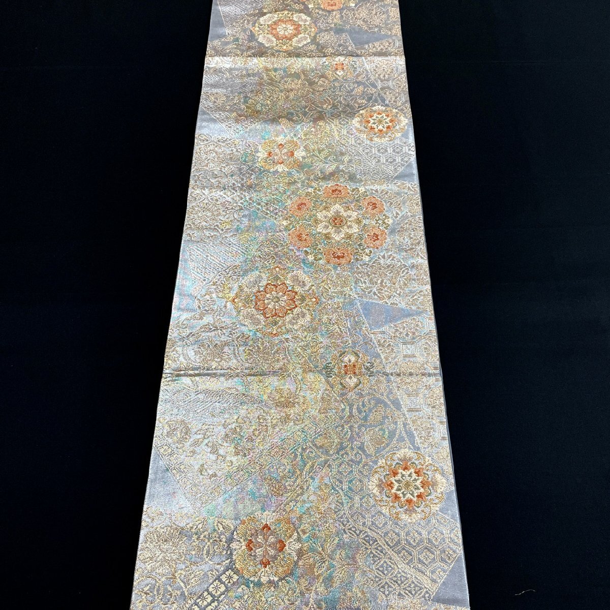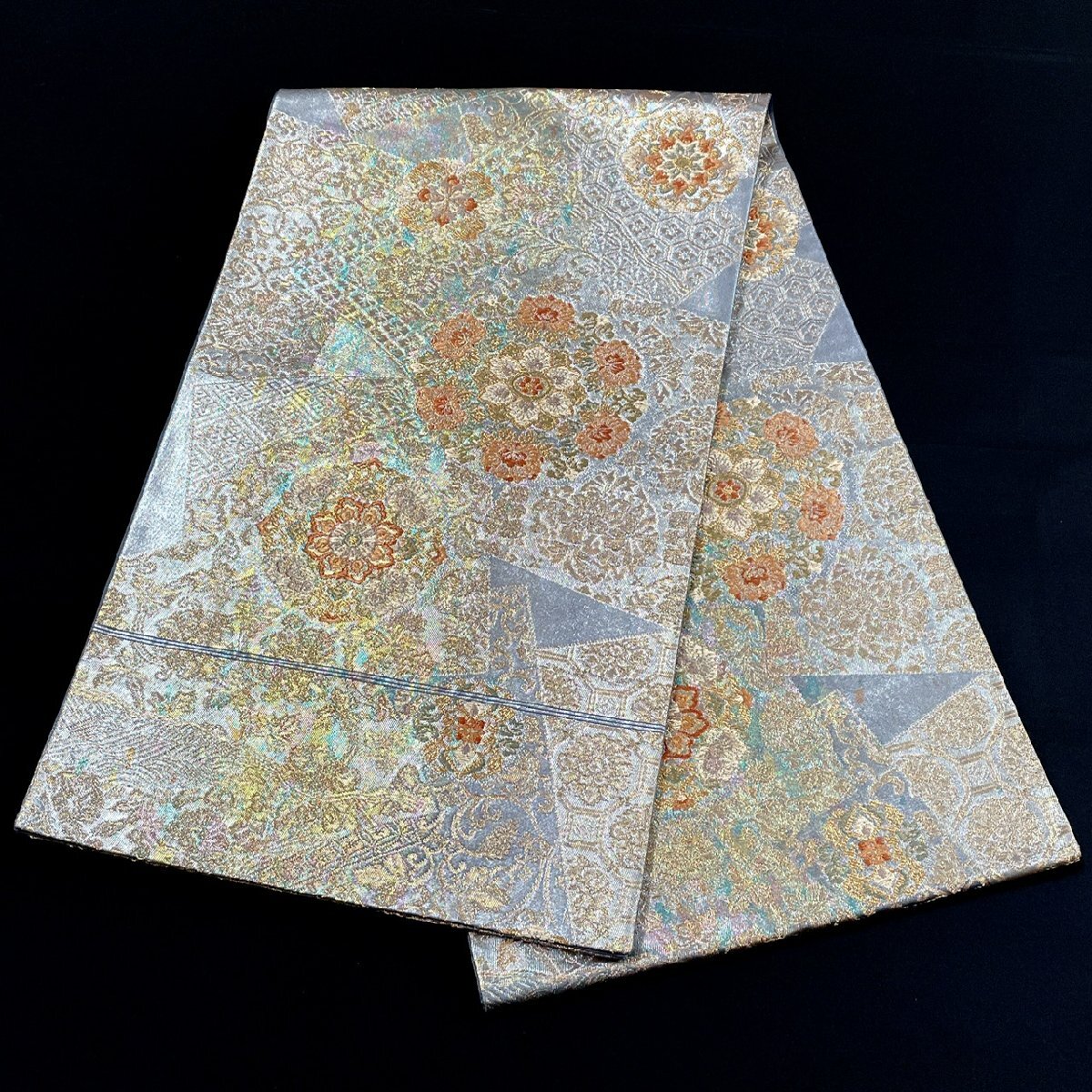 着物月花 引箔 華文様 袋帯 六通柄 正絹 金銀糸 ob7587