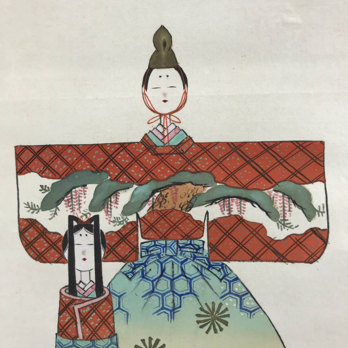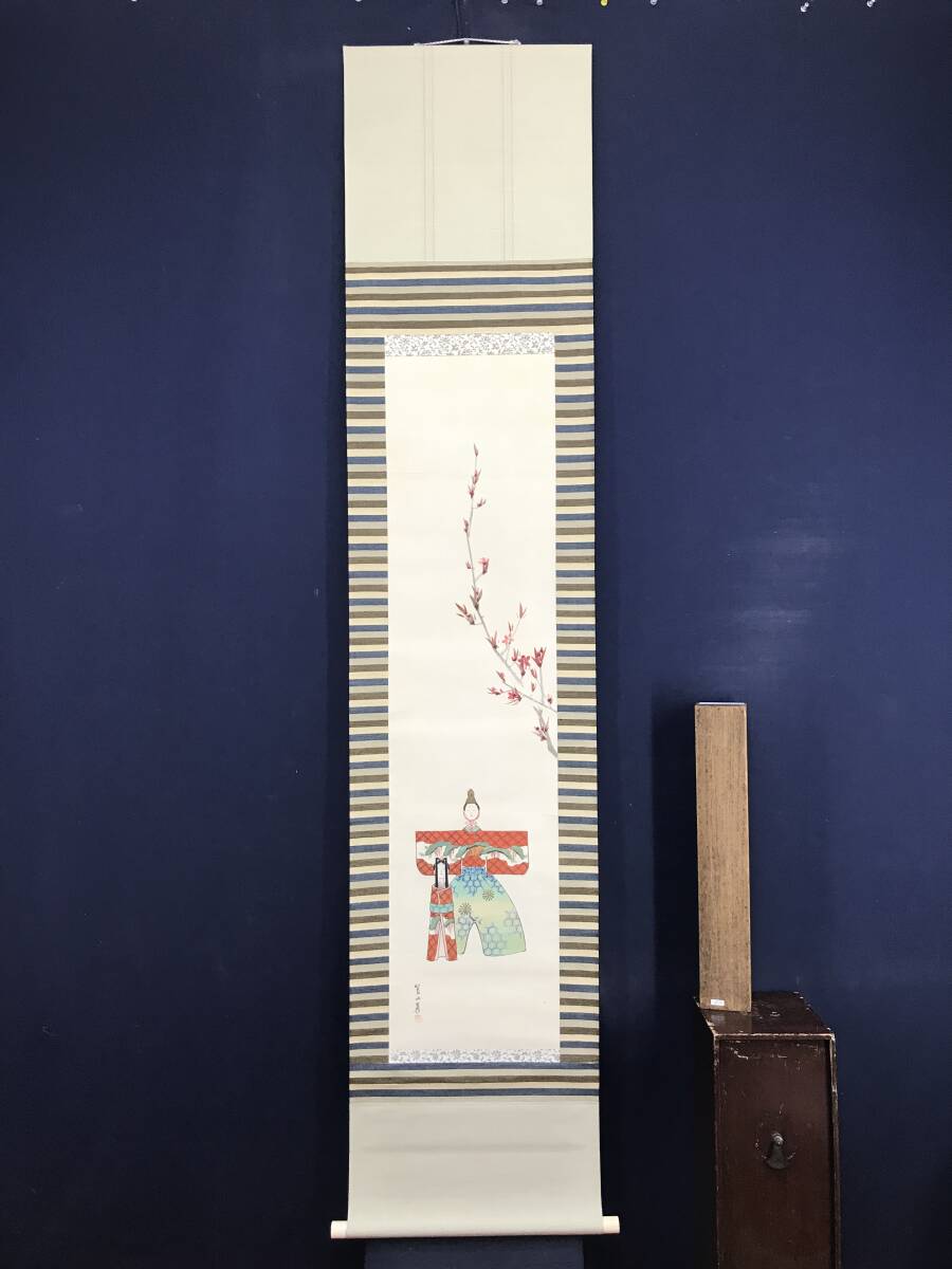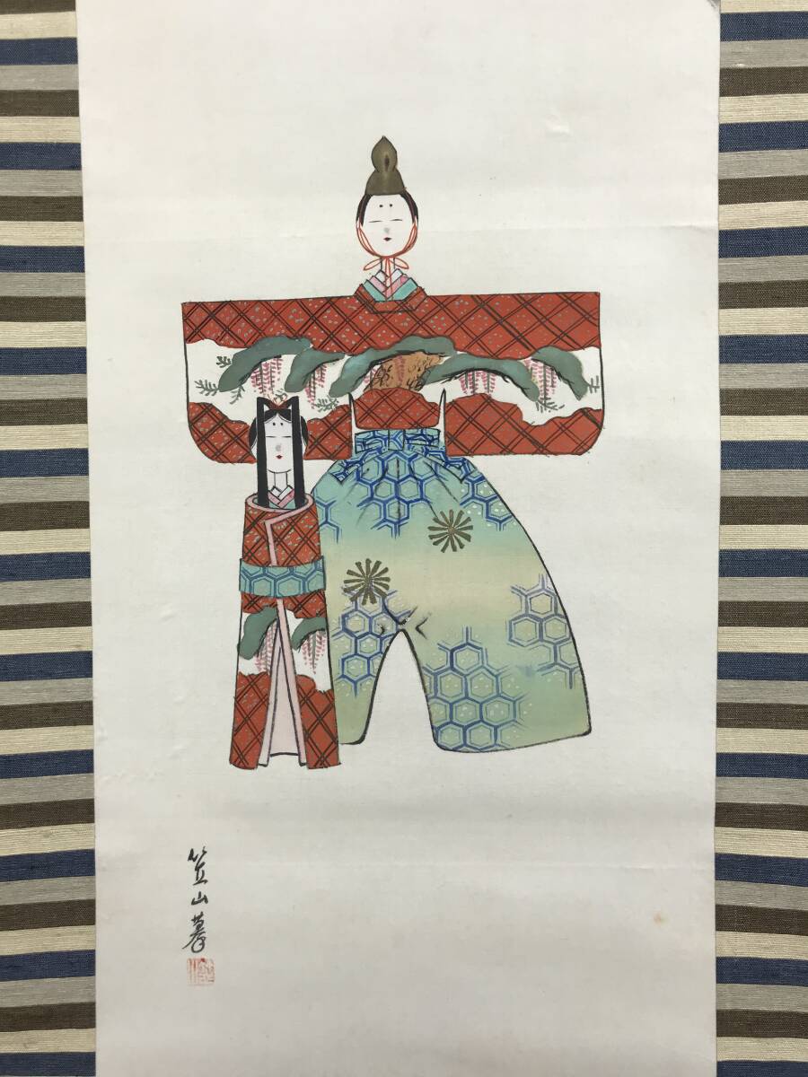 真作/笠山/雛図/ヒナ図/桃の節句/春の掛軸/掛軸☆宝船☆AK-436