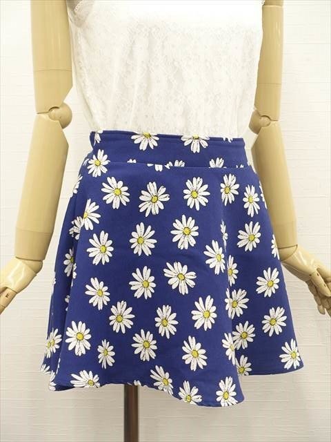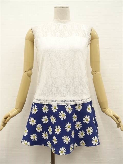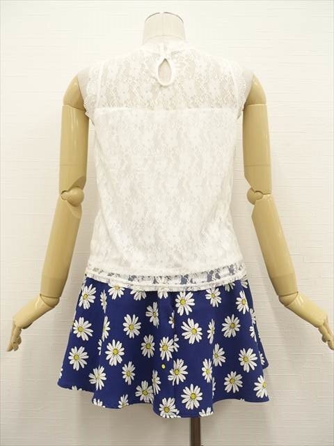 洗えるノースリーブレースカットソー+ミニ丈フレアスカート コーディネート上下2点セット M相当 オフホワイト 花柄/ブルー系地 ホワイト×イエロー 花柄 フェミニン・ガーリー系 20代~