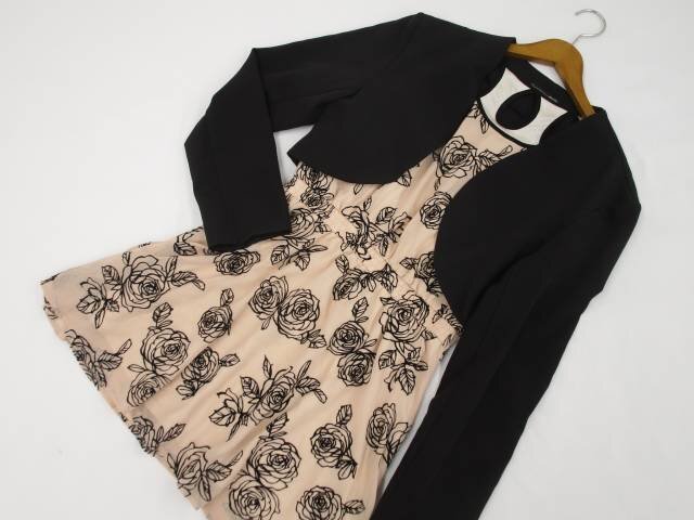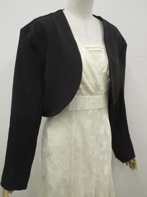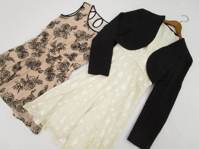長袖ボレロ+ロング丈シフォンノースリーブワンピース+ひざ丈シフォンノースリーブワンピース コーディネート3点セット L相当 ブラック/アイボリー&シルバー 花柄/ピンクベージュ地 ブラック 花柄 フェミニン・きれいめ系 20代・30代・40代