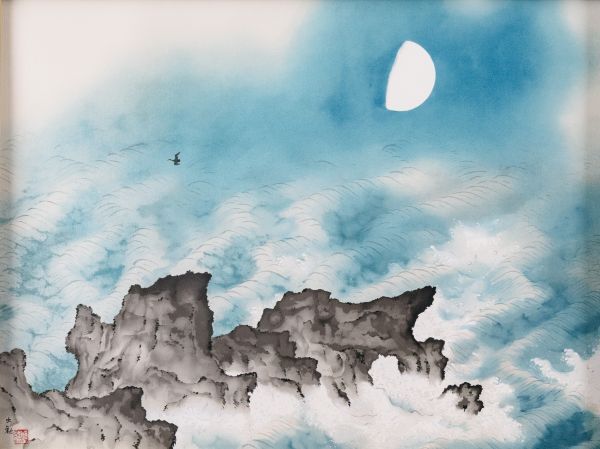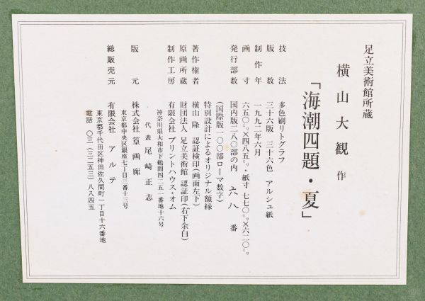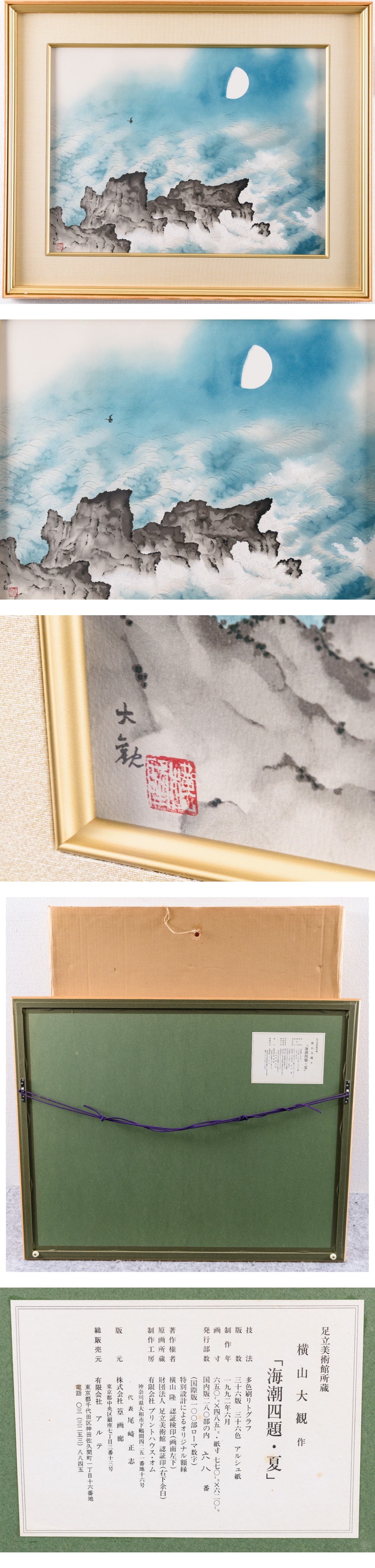 【真作保証】横山大観「海潮四題・夏」 リトグラフ 刷り込みサイン, 刷り込み印, ed.280 版元シール 文化勲章 K229