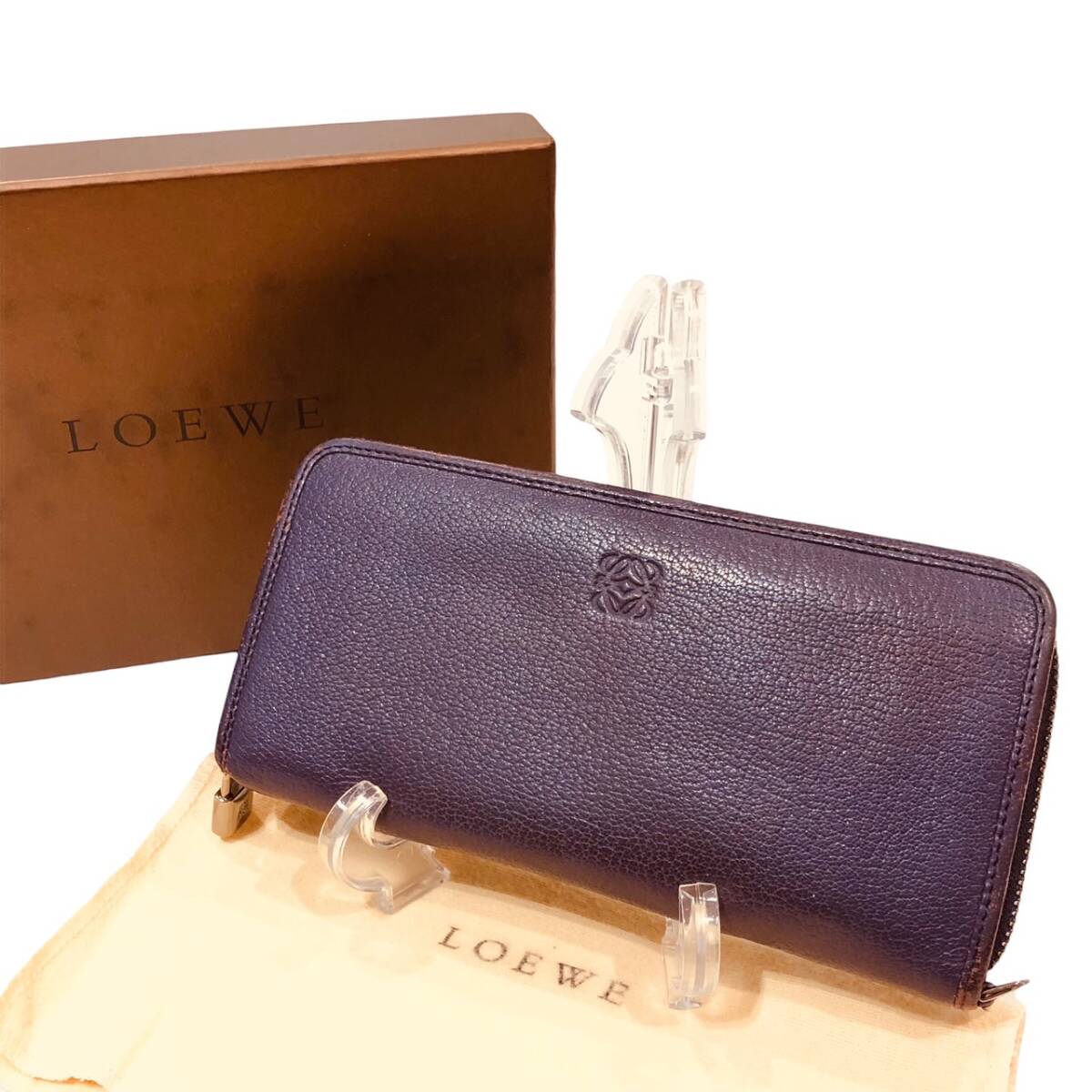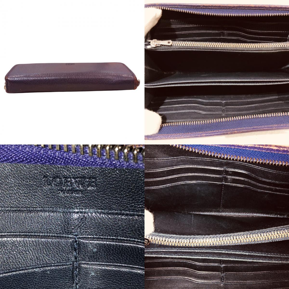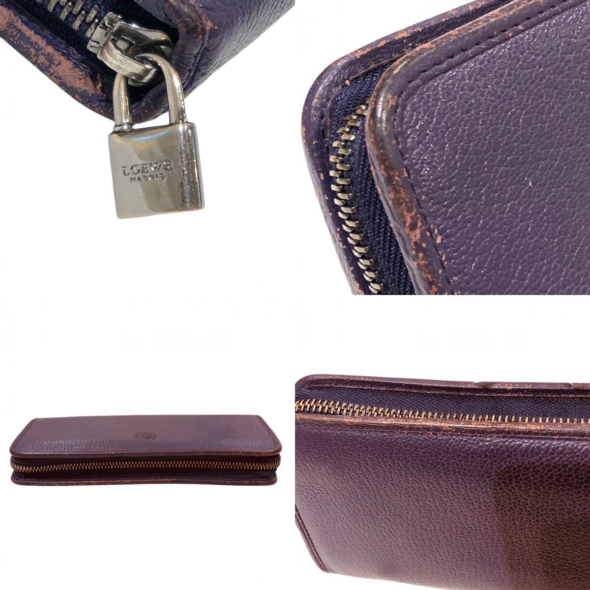 | LOEWE ロエベ レザー ラウンドファスナー ラウンドジップ ロゴ刻印 長財布 パープル系 |