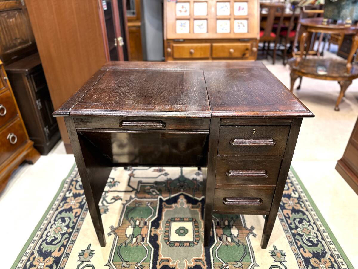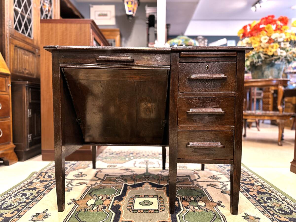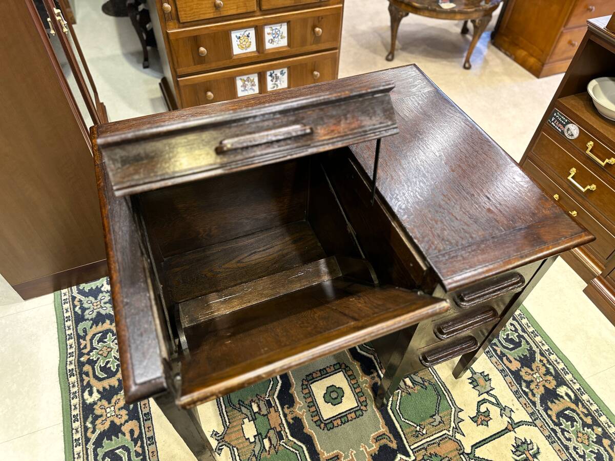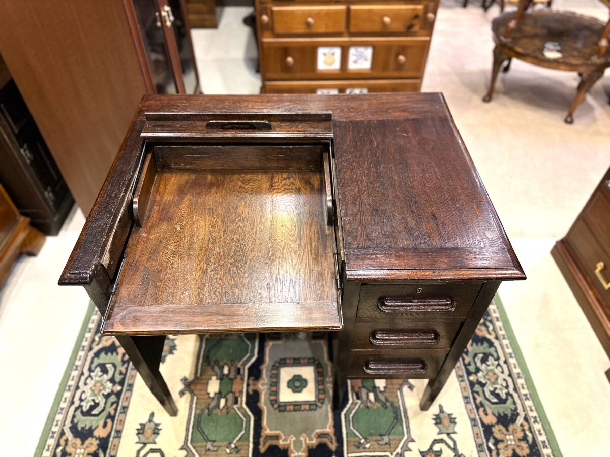 イギリスアンティーク オークワークデスク 机 キャビネット