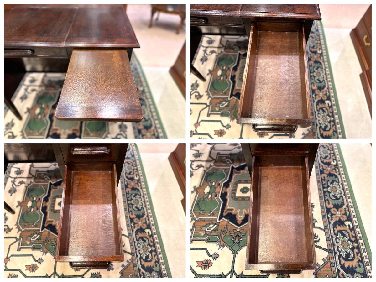 イギリスアンティークのオークワークデスクは、 重厚なオーク材の風合いと、使い込まれた木肌の深い味わいが魅力の一台です。 落ち着いた佇まいの中に、英国家具らしい上品さが漂い、長年大切に扱われてきたことを感じさせます。 広めの天板は作業スペースをしっかり確保し、書き物や読書、パソコン作業にも快適。 引き出し収納も備わっており、実用性にも優れています。 素朴さと優雅さが共存するデザインは、アンティーク初心者から家具好きの方まで幅広くおすすめです。 お部屋に迎えれば、毎日のワークスペースがぐっと心地よく、雰囲気豊かな空間に。 英国アンティークの魅力を自然体で楽しめる、飽きのこないワークデスクです。 【商品状態】 古いお品ですので各所塗装ダメージや打痕等ありますので程度については写真をご参考下さい。 ダメージについてはアンティーク家具の魅力とも言える部分なので過度に手を加えない様にしております。 鍵は付属しません。 上記の点をご理解の上ご入札をお願い致します。 【商品詳細】 サイズ: W 910 D 705 H 765 【発送】 アートセッティングデリバリーでの発送となります。 サイズランク: Cランク -=--=-=-=-=-=-=-=-=-=-=-=-=-=-=-=-=-=-=-=-=-=-=-=-=-=-=-=-= 【取引詳細】 ・落札後のキャンセルはお受けできません。 ・支払いはヤフーかんたん決済のみとなります。 ・配達日、時間のご指定がある場合は落札後、お支払い前にご連絡下さい。 地域によっては時間指定ができない場合もございますのでご了承下さい。 配達日時のご指定のない場合は最短での配達となります。 大きなサイズの商品については予め搬入経路のご確認をお願い致します。 吊り上げ等の作業が必要な場合はお客様のご負担となります。 ・返品はお受けできません。 ・中古品の為、欠損やダメージの見落とし等ある場合がございます。 写真に載っていない・説明に書いていないなどの理由での返品も原則応じかねます。ご理解頂いた上でのご入札をお願い致します。 ・商品について気になる事がありましたら、お気軽にご質問下さい。 ・即決、値引きについての質問にはお答えできません。 ・オークションの取消 出品中の商品は店頭販売も行っております。 店頭で販売された商品については取消、取引のキャンセルを 行う場合がございますので予めご了承下さいませ。 ■■■お願い■■■ ・落札後、24時間以内にご連絡お願い致します。 ・直接のお引取ご希望の場合はその旨ご連絡下さい。 ・ヤフオク仕様変更により、こちらからお客様お電話番号が見えなくなっております。 アート依頼時に必須になりますのでお客様のお電話番号をお知らせ下さいませ。 ■■■発送方法■■■ ・送料は元払いで発送致します。 ・送料は落札者様負担となります。 *上記の内容をご理解頂き納得の上 入札をお願い致します。 -=--=-=-=-=-=-=-=-=-=-=-=-=-=-=-=-=-=-=-=-=-=-=-=-=-=-=-=-= アンティーク家具や雑貨を取り扱っている店舗より出品をしております。 ヤフーオークションへの出品は一部商品となっておりますので 機会がございましたら店舗へのご来店をお待ちしております。 静岡県伊東市吉田 142 SNSにて入荷商品や、店内の様子を紹介しております! 下記のアカウントで検索してみてください♪ Instagram:@aston_antiques TikTok:@aston_antiques -=--=-=-=-=-=-=-=-=-=-=-=-=-=-=-=-=-=-=-=-=-=-=-=-=-=-=-=-= ■■■当店ホームページ■■■ https://aston-recycle.jp/ ホームページに店舗のご案内が掲載されていますのでご覧下さい。 | |||