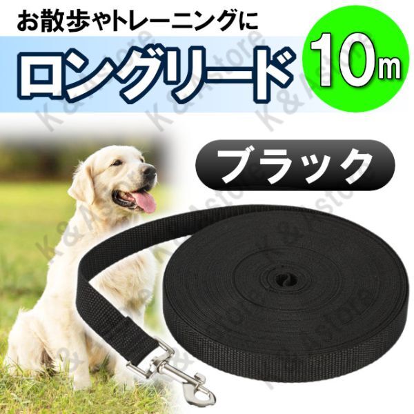 ロングリード 10m 犬用 ドッグラン ペット 散歩 小型犬 中型犬 大型犬 長い リード 絡まない しつけ トレーニング ブラック 黒