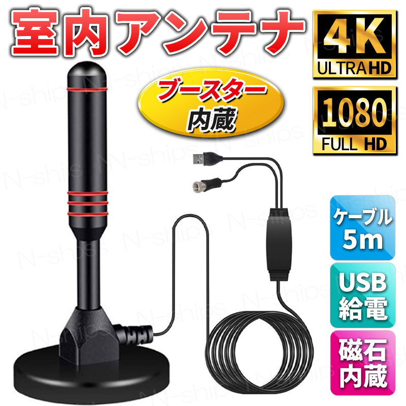 室内アンテナ 屋内 ブースター内蔵 4K HD テレビ TV ロッド 地デジ 高感度 高性能 ポータブル デジタル UHF VHF 車載 小型 軽量 ワンセグ | |||