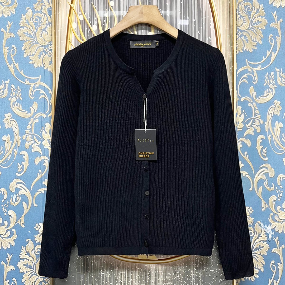 定価4万★christian milada・ミラノ発・カーディガン★上質 ウール混 ソフト 保温 無地 vネック 高級 ニット 長袖 レディース 普段着 S/34サイズ