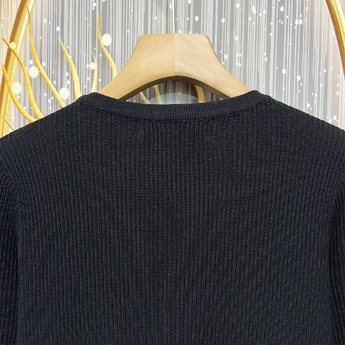 ややのVネックデザインは、顔周りをすっきり見せる効果があります。大人の可愛らしさを取り入れたデザインが、清潔感と爽やかさをさりげなく演出します。また、袖口や裾がリブ切替で程よいきちんと感も作り出します。