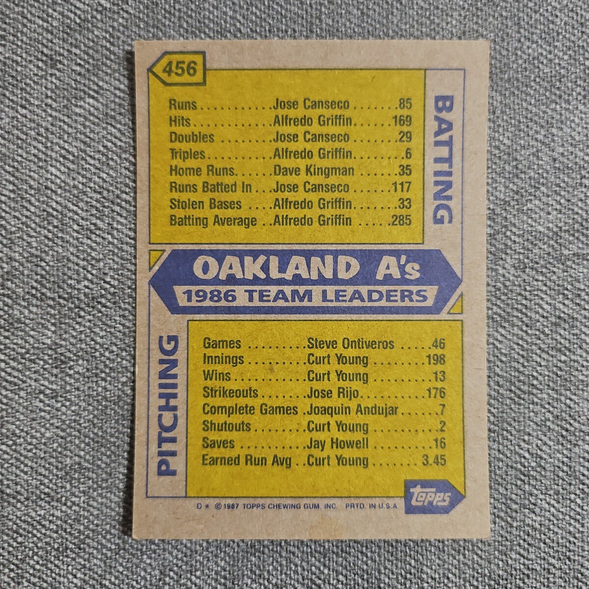 【1112-3】TOPPS MLB 1987 A's LEADERS ベースボールカード 野球カード ベースカード メジャーリーグ 当時物