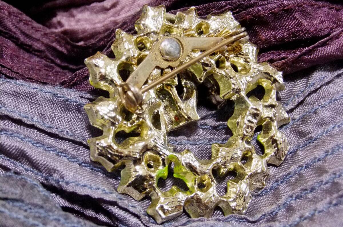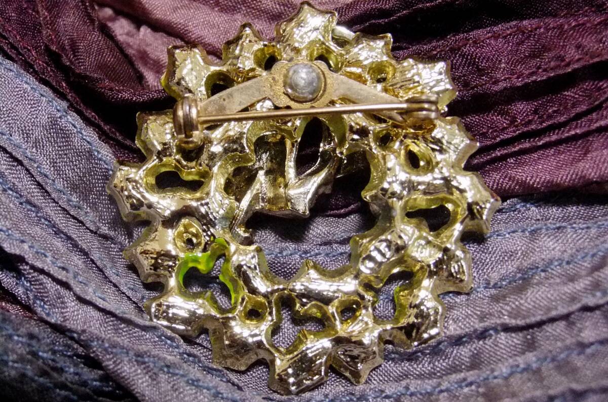 ヴィンテージ:2つのベル、柊リースのブローチ 4-62