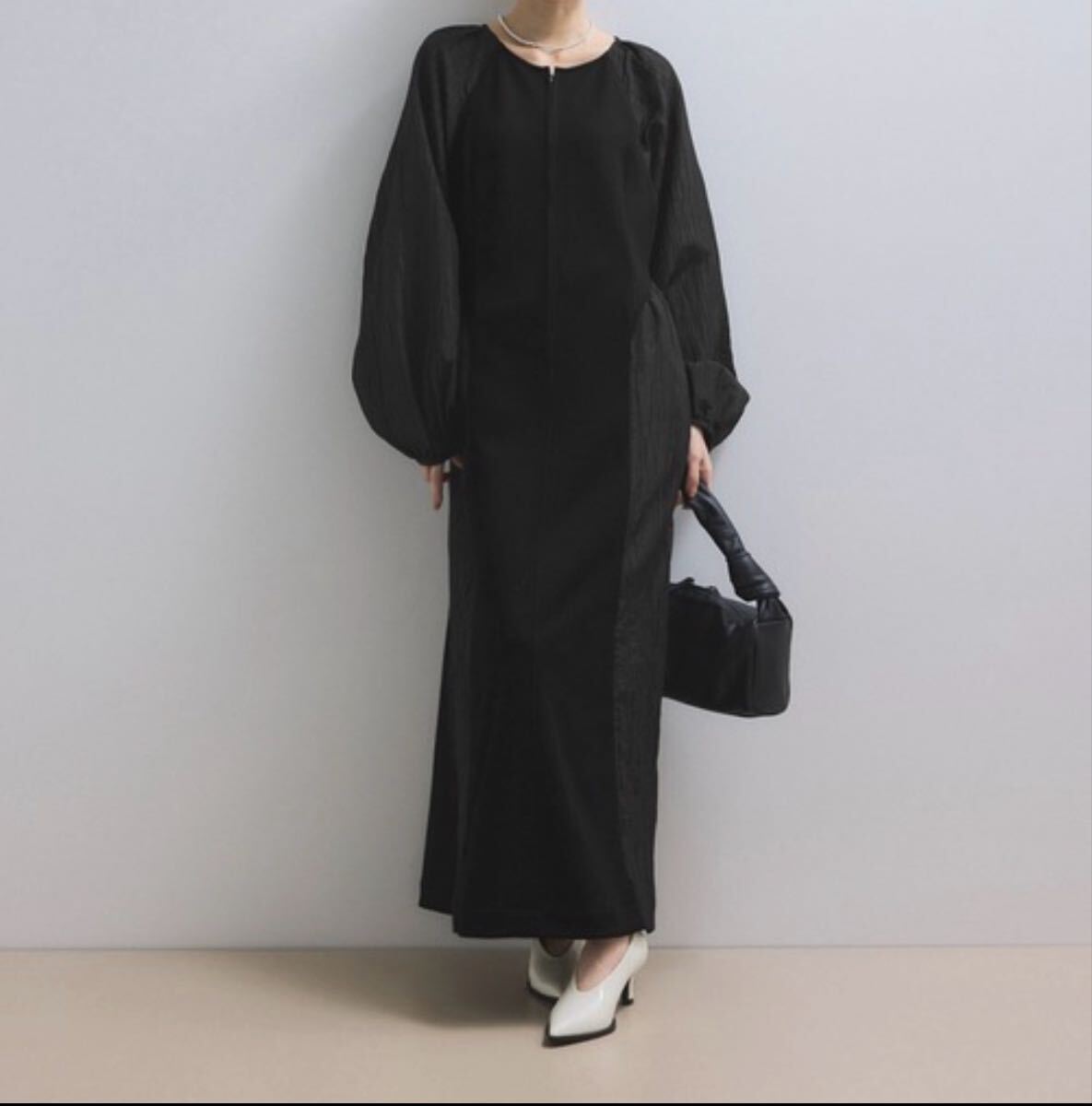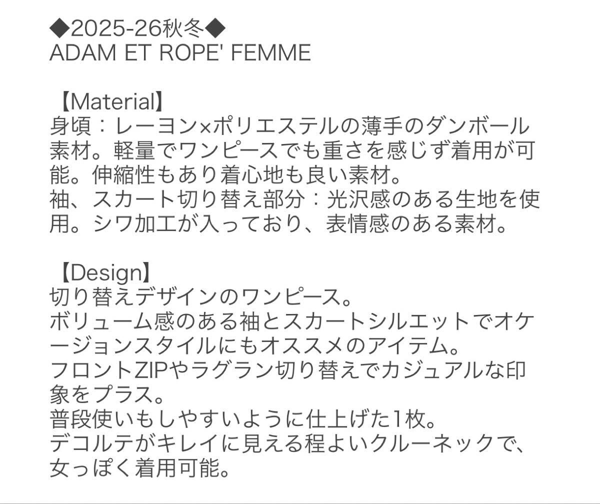 ADAM ET ROPE'(アダムエロペ)のフロントZIPコンビギャザーワンピースです。