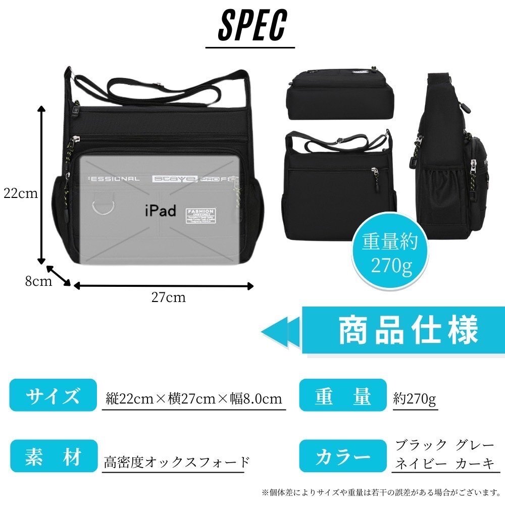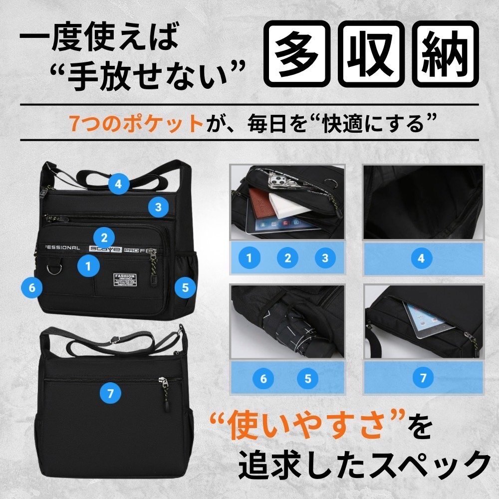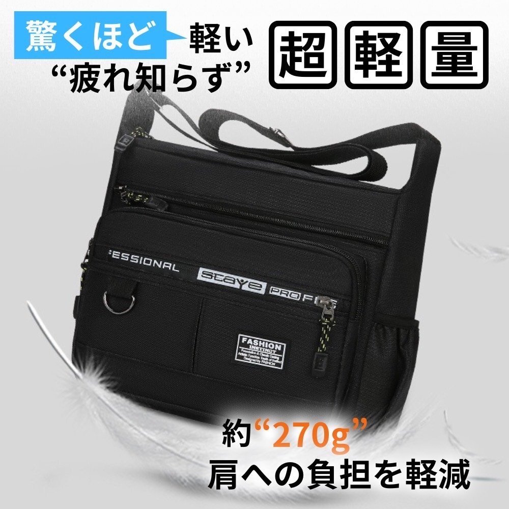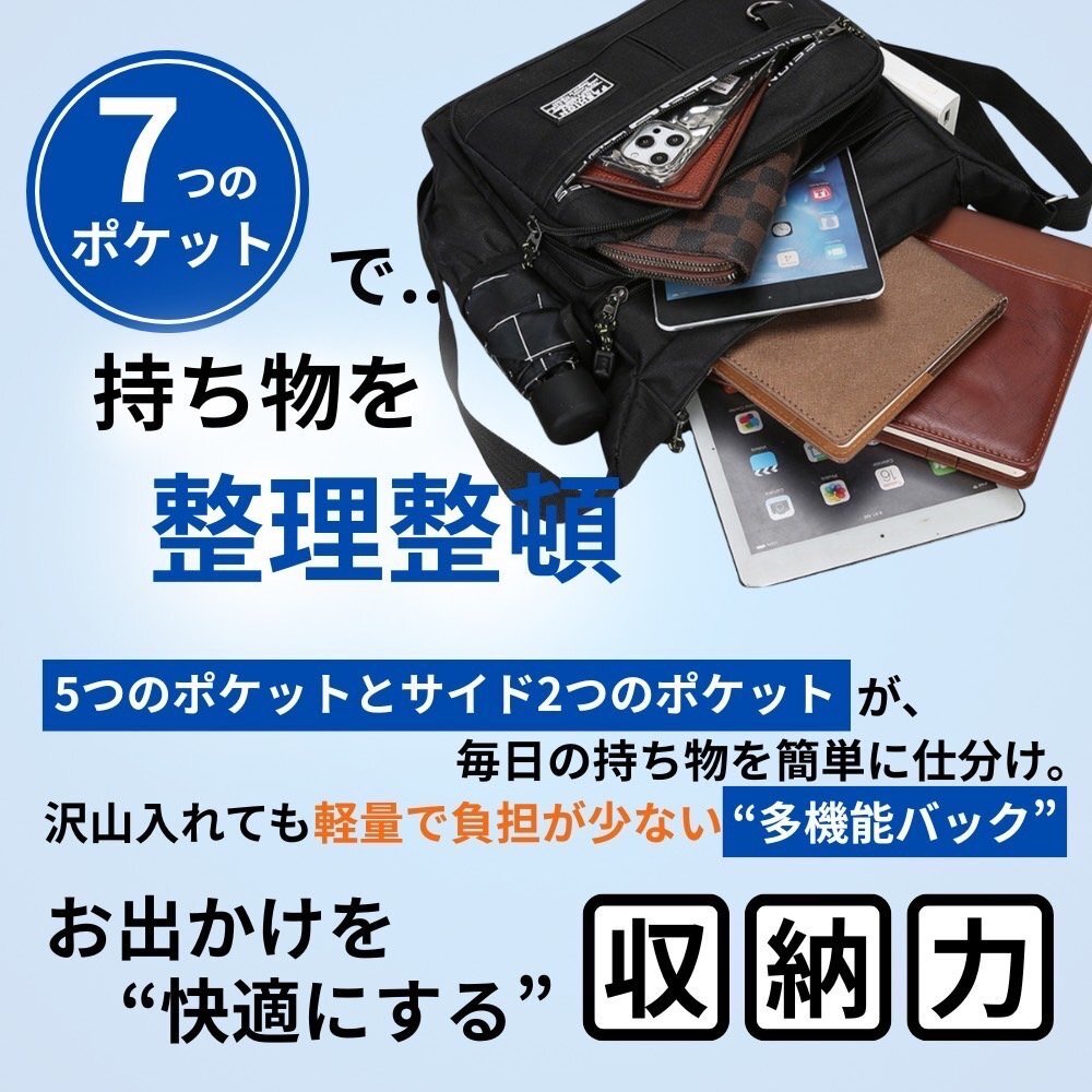 ショルダーバッグ ボディバッグ メンズ 男女兼用 撥水 大容量 多収納 通勤通学 プライベート ブラック