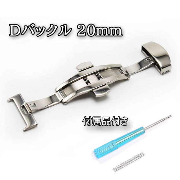 プッシュ式Dバックル 両開き(バタフライ)タイプ シルバー 20mm