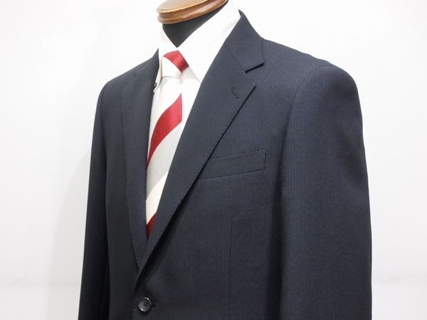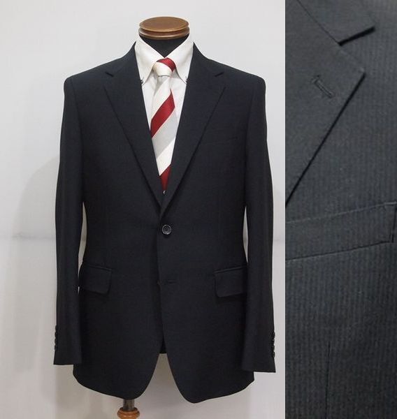 秋冬物■■こだわり商品■総裏スーツ■5776■スタイリッシュ ノータック 2っ釦スーツ■A7■ブラック・織ストライプ■ウォシャブル仕様