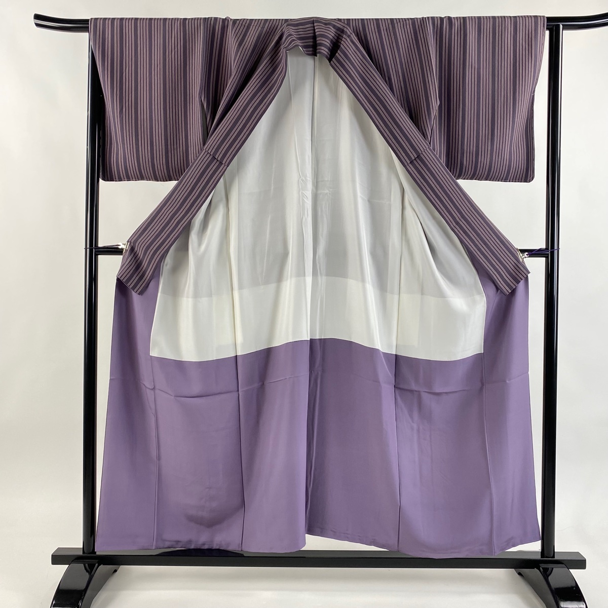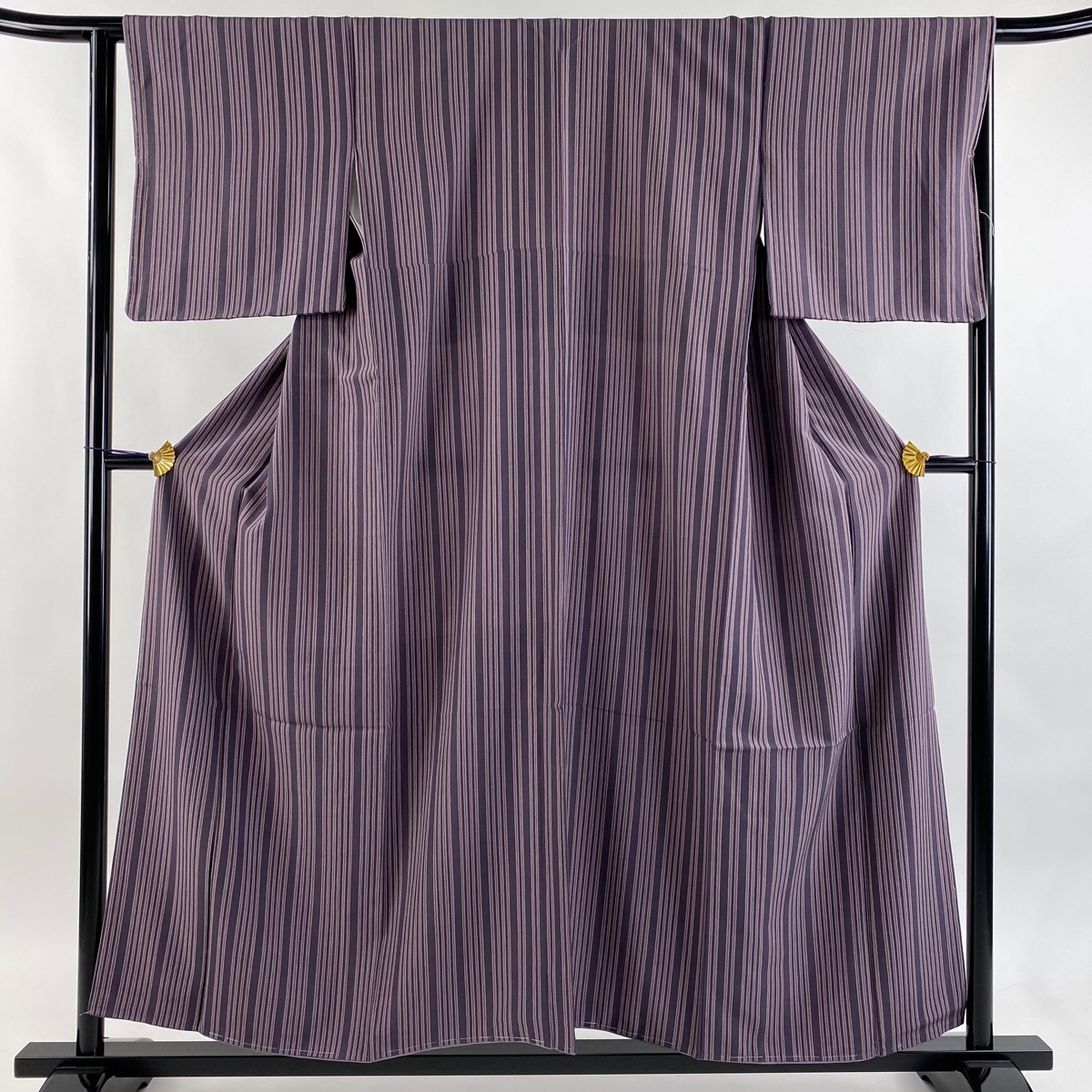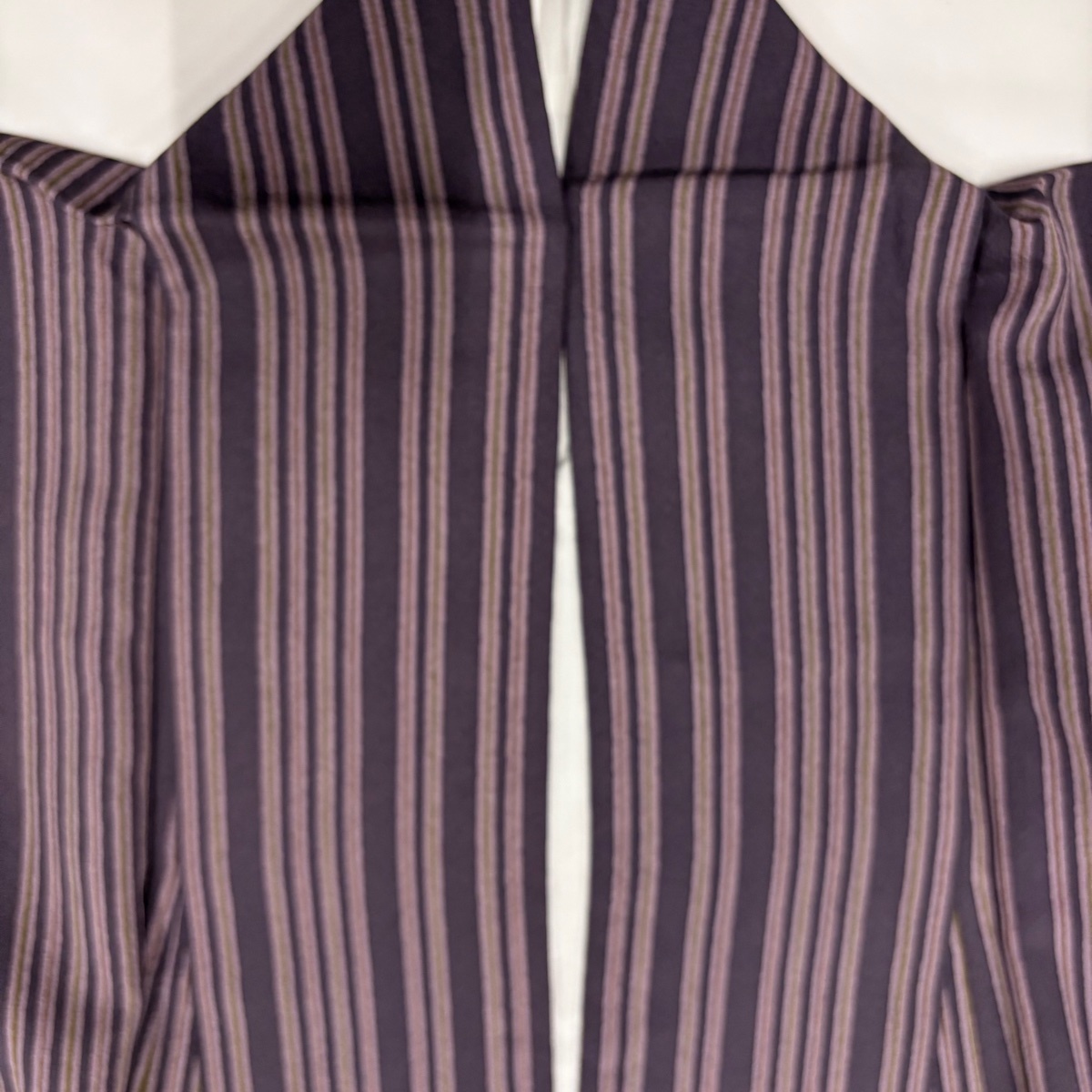 | 小紋 美品 秀品 縦縞 紫 袷 身丈155 裄丈65 M 正絹 【中古】 |