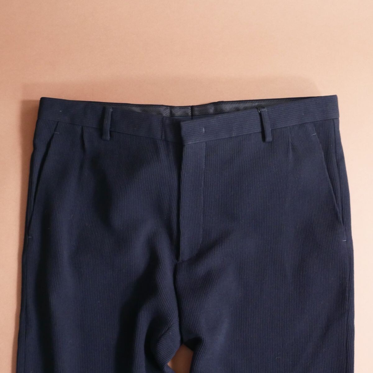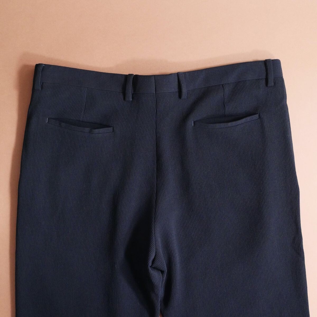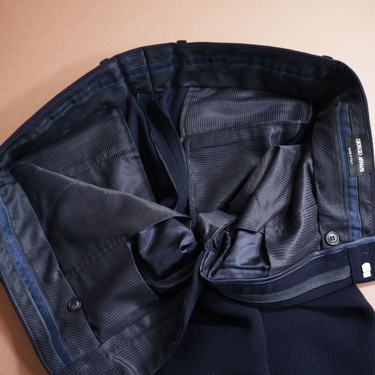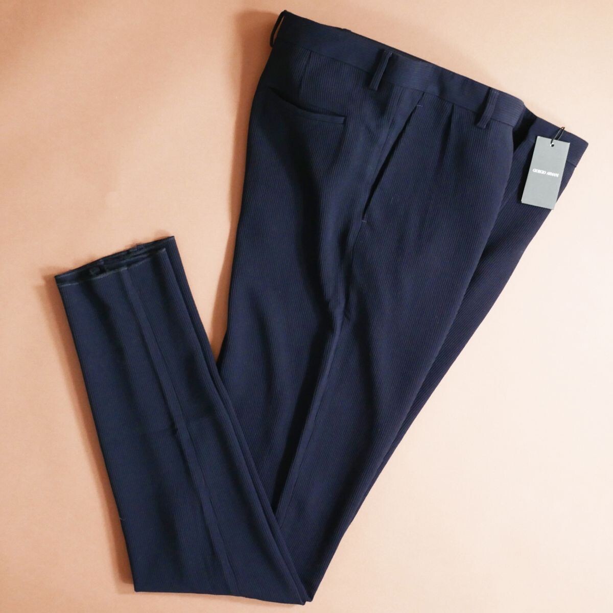 ●イタリアのプレミアムラグジュアリーブランド「GIORGIO ARMANI(ジョルジオ アルマーニ)」による、オールシーズンご着用いただける上質ウール混紡スラックスパンツでございます。イタリア製。タイムレスなエレガンスと現代的な快適さを兼ね備えた一本で、ビジネスからカジュアルな装いまで幅広くご活用いただけます。 ●高級感のあるネイビーの生地は、細かな畝のような立体的なテクスチャーが特徴。光の加減でわずかに陰影が生まれ、上品な奥行きを感じさせます。滑らかでしなやかな肌触りながら、適度なハリを持ち、美しいシルエットをキープします。 ●フロントはノータック仕様、サイドポケット付き。バックスタイルには両玉縁ポケットを採用し、ミニマルかつクラシックな印象を与えます。ウエスト周りはすっきりと仕立てられ、アルマーニらしい精緻なパターンメイキングによって脚のラインを長く見せる計算されたカッティングとなっております。 ●素材は、ビスコースとヴァージンウールをブレンドした上質なファブリックを使用。柔らかさと伸縮性を兼ね備え、長時間の着用でも快適なフィット感を維持します。通気性にも優れ、季節を問わずご愛用いただける万能な素材感です。 ●ベルトループ付きのシンプルなウエストデザインで、ドレスシャツやジャケットとの相性も抜群。ビジネスシーンはもちろん、オフの日のスマートなカジュアルスタイルにもマッチする万能パンツです。 ●アルマーニならではのイタリアンテーラリングの美学が息づく一本で、着用時のラインの美しさと履き心地の良さの両立を実現しております。長くご愛用いただける定番の名品です。 ●前後ポケットあり。伸縮性あり。前ひざ辺りまで裏生地付。 ●色:ミッドナイトダークネイビー系 ●素材: 表地:ビスコース60%、ヴァージンウール40% (膝裏地:レーヨン100%) 裾テープ生地付き。 ●サイズ:54 *日本サイズ概ねXL-XXLサイズ辺りとなりますが、下記詳細サイズもご確認の上、よろしくお願いいたします。 ●詳細サイズ(cm)置いた状態で: ウエスト約:96 わたり幅:約33.5 股上:28.5 股下:97 裾幅:17 詳細サイズご参考 ※大よその採寸となります。 ※お品物はタイトルにございますもののみとなり、着合わせのお洋服や小物などがございましても、それらは含まれません。 ※素材の特性上、多少のことはご容赦くださいませ。 ※ご質問は、必ずご入札前にお願いいたします。(ご入札後、ご落札後の取引ナビからのご質問はお避け下さい) ☆☆☆ご連絡・お支払い(Yahooかんたん決済)☆☆☆ ご落札後24時間以内に、取引ナビからご連絡(お名前・ご住所全て。*サイズ選択いただけるオークションはサイズのご連絡も含め)・Yahooかんたん決済可能な方。 *銀行振込の場合は翌営業日、コンビニ決済はご落札後2日目の午前中まで、お支払いをお済ませ下さいませ。 電話応対は、一切致しておりません。取引ナビをご利用下さい。 ☆☆☆受け取り連絡☆☆☆ 製品到着後24時間以内。*出来る限り、到着日当日に受け取り連絡頂きましたら幸いです。 *配達日指定ご希望の際は、ご落札後、最長4日以内に「受取連絡」ができるようお願いします。(北海道・沖縄・離島の方は5日以内) *特別に記載をしました際には、そちらを優先させていただきます。 ☆☆☆同日に2点以上のご落札の場合☆☆☆ 「まとめて取引」を、最初にご選択ください。 *「まとめて取引」を、お届け情報などご入力前にご選択ください。同梱発送となり、一品分の送料のみとなります。 *「まとめて取引」をご選択されなかった場合、出品者側では送料訂正できませんので、予めご了承くださいませ。 新規IDの方は、こちらを必ずご覧くださいませ ☆☆☆ご入札及びご落札のキャンセルはしていただけません☆☆☆ ![]() 【お支払い】 合計金額 = ご落札価格 + 送料 ◆Yahooかんたん決済(ご落札後24時間以内に支払い手続きを完了ください。) *2点以上同日ご落札の場合は、『まとめて取引』をお選びください。 *領収書がご必要の際:ご落札後Eメールアドレスを、取引メッセージにてお知らせ下さい。電子領収書をEメールに添付してお送り致します。 Yahoo!かんたん決済は、ヤフオク!の商品代金の支払い、受け取りを簡単安心に行える決済サービスです。ご落札者様は、クレジットカード、コンビニ支払い、銀行振込はもちろん、Yahoo!マネー、Tポイントも利用できるお支払い方法です。 【発送】 発送は、クロネコ宅急便(元払い)のみとなります。迅速な対応を心掛けております♪ ☆宅急便送料---全国一律。(送料は自己紹介欄に記載しております) *配達時間指定:午前中、14-16時、16-18時、18-20時、19-21時。(時間指定ご希望の方は、必ず最初にお知らせください) *シンプル・丁寧な梱包を心がけておりますが、梱包のリクエストはご遠慮くださいませ。 *離島は、通常よりコンパクトな梱包となります。 *2点以上同日にご落札頂きましても、同梱の場合の送料は、一個口分のみとなります。*「ま