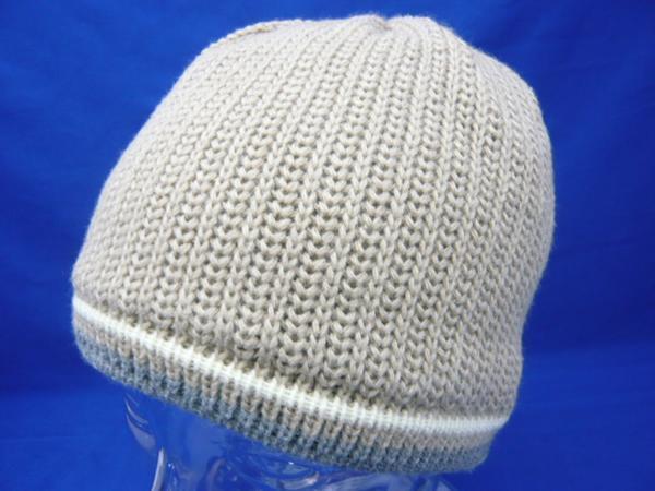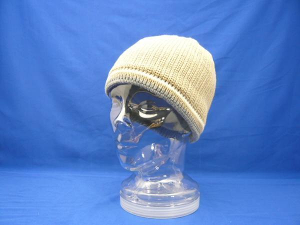 ★内側フリースでより暖か♪ライン入りニットワッチ帽★ベージュ