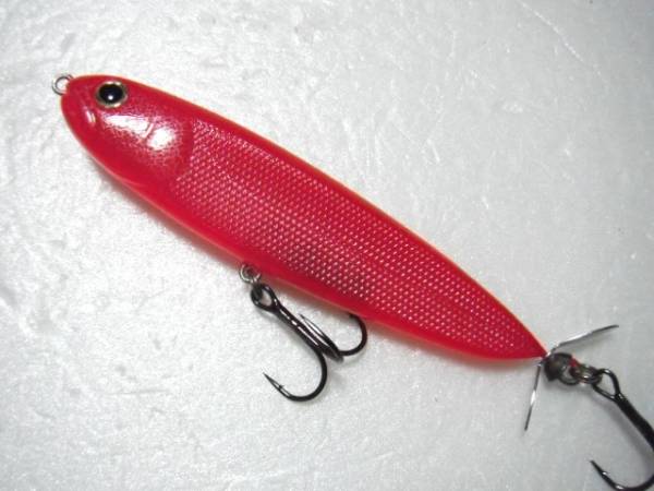 ここでは、リップルジェット誕生までの様々な経緯を振り返ってみたい。リップルジェットの前身はミノーであったが、そもそもサイレントペンシルとして2004年カタログに登場したプロトモデルが原型となっている。奥村がミノーに費やした開発期間は長く、当時からロールアクションを重視したコンセプトのもと、様々なミノーが作られていた。そのうちのひとつが、サイレントペンシルのフォルムをミノーとして再検討したモデルで、ロール時の水流攪拌効果を狙って、ボディ側面をえぐるように窪ませたデザインを特徴としていた。