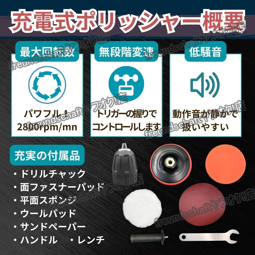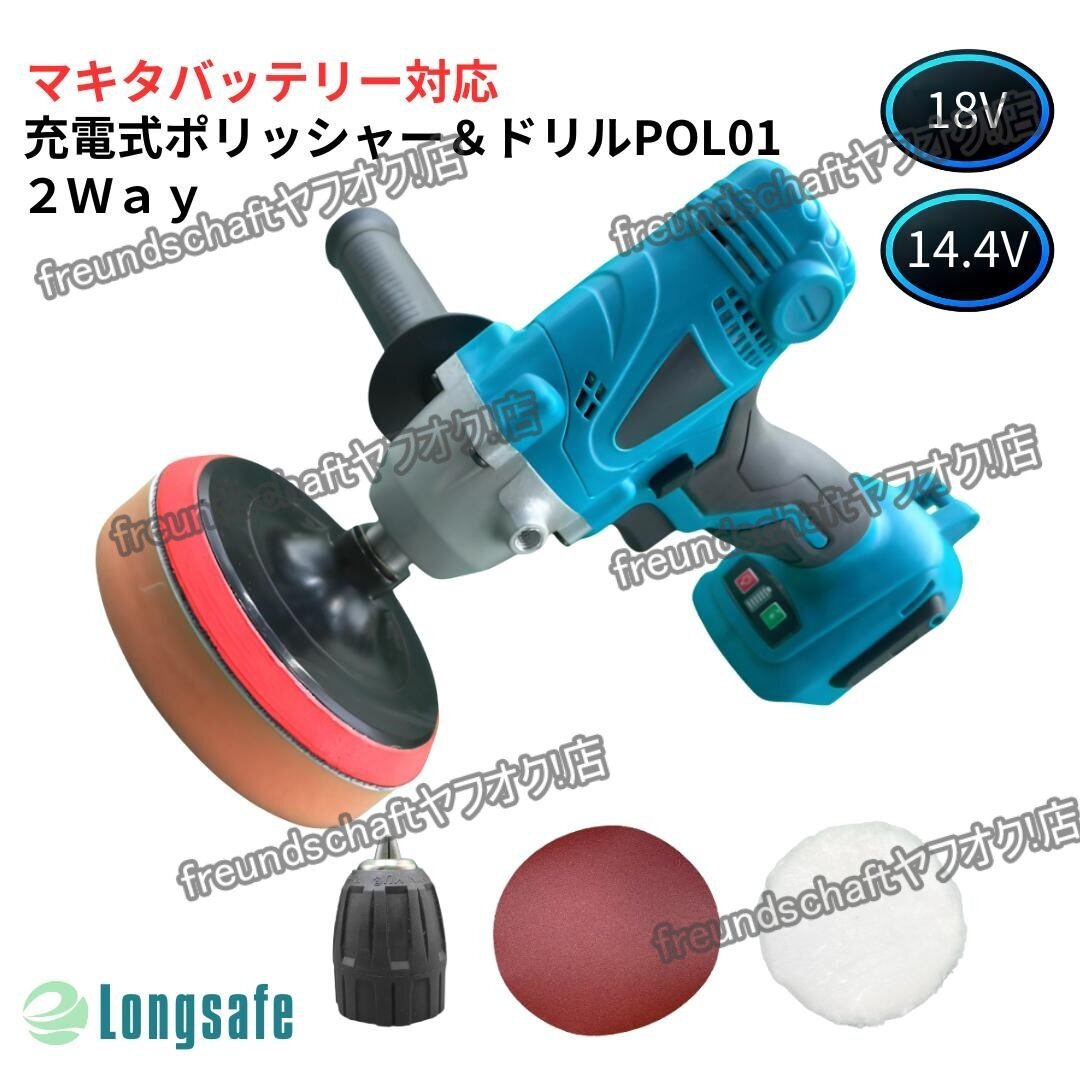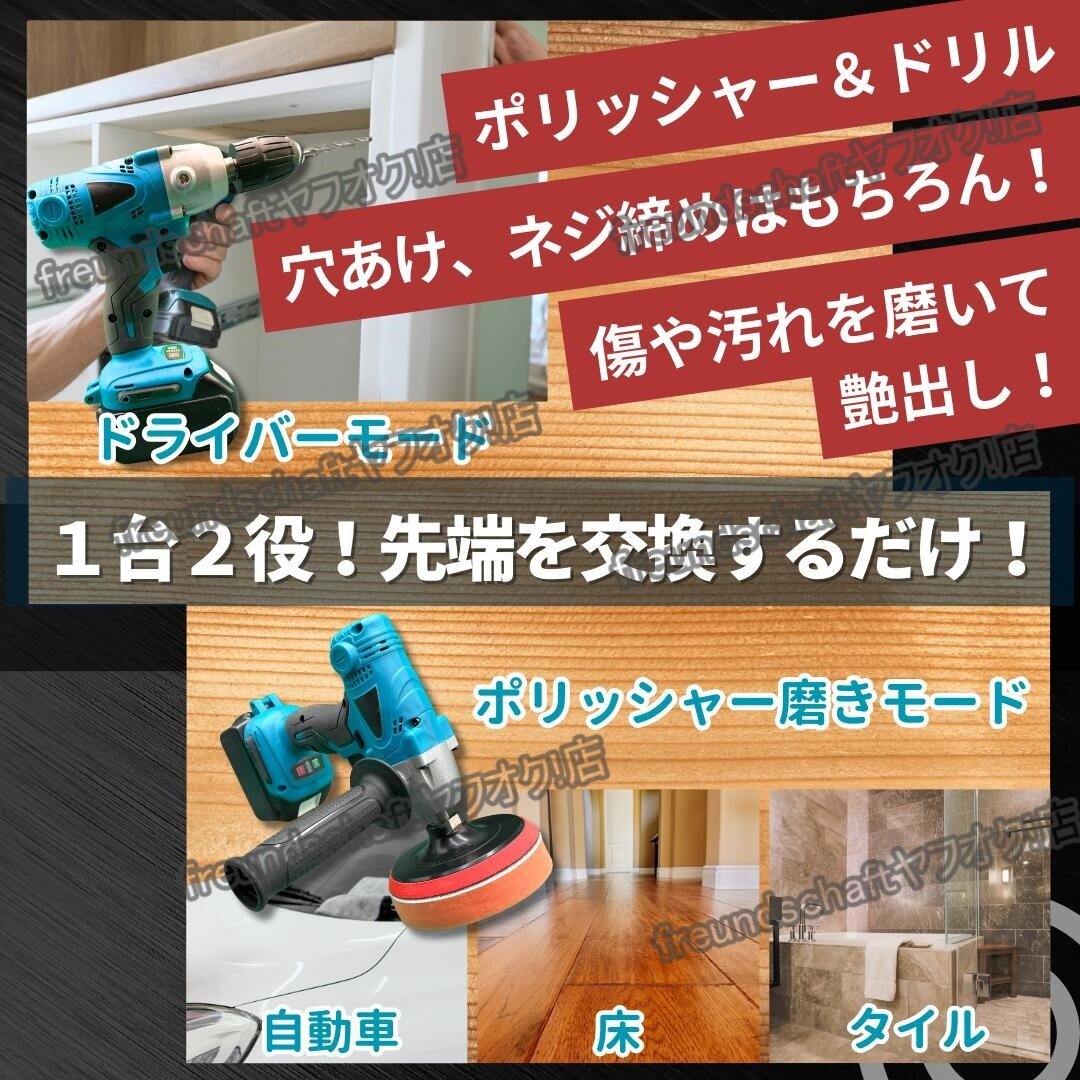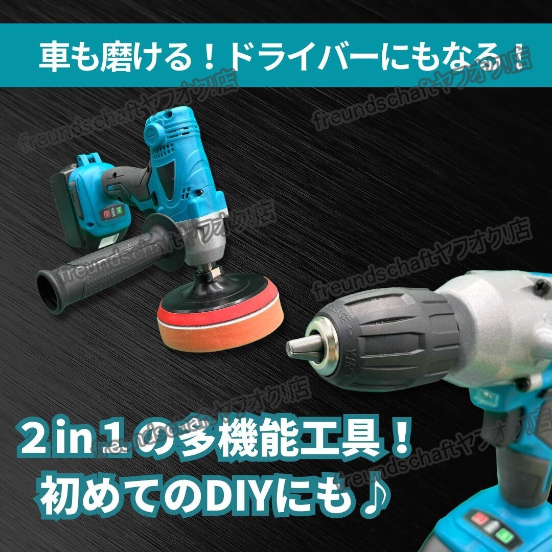マキタ 互換 ポリッシャー 充電式 18V 14.4V 2WAY ドライバー機能付き カーポリッシャー コードレス 電動工具 バフがけ 125mm zchw0236.2