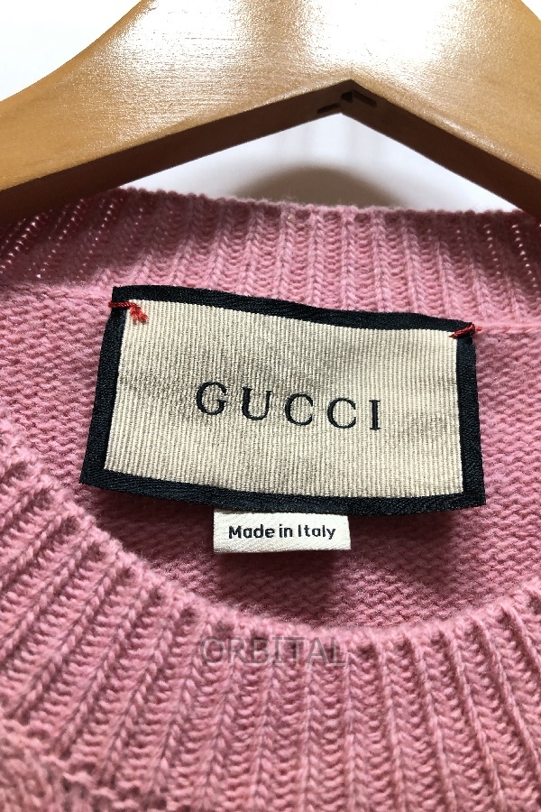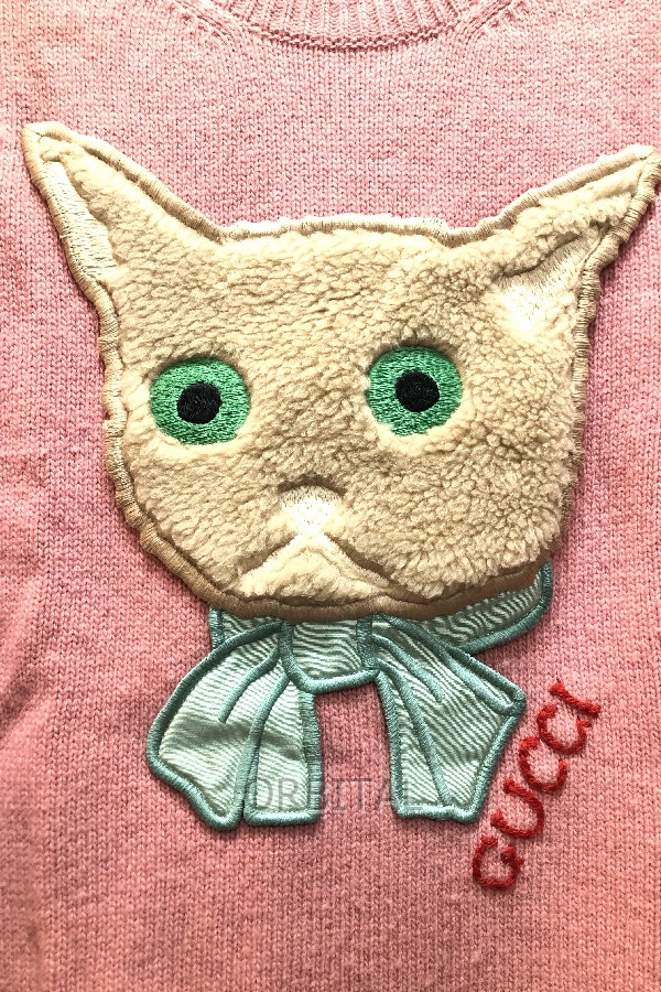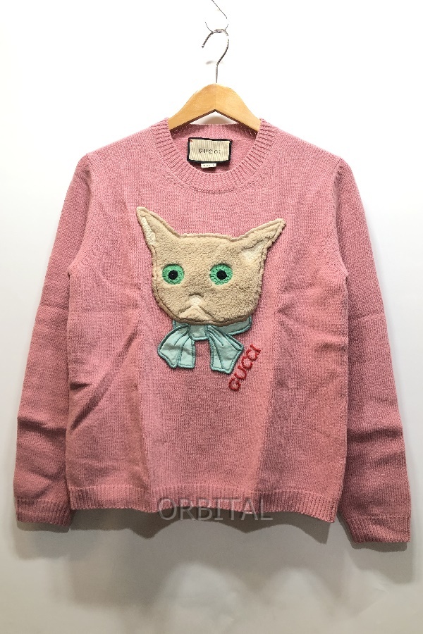 グッチ GUCCI キャットパッチ ネコ アップリケ ウール ニット セーター サイズXS ピンク 662173 レディース