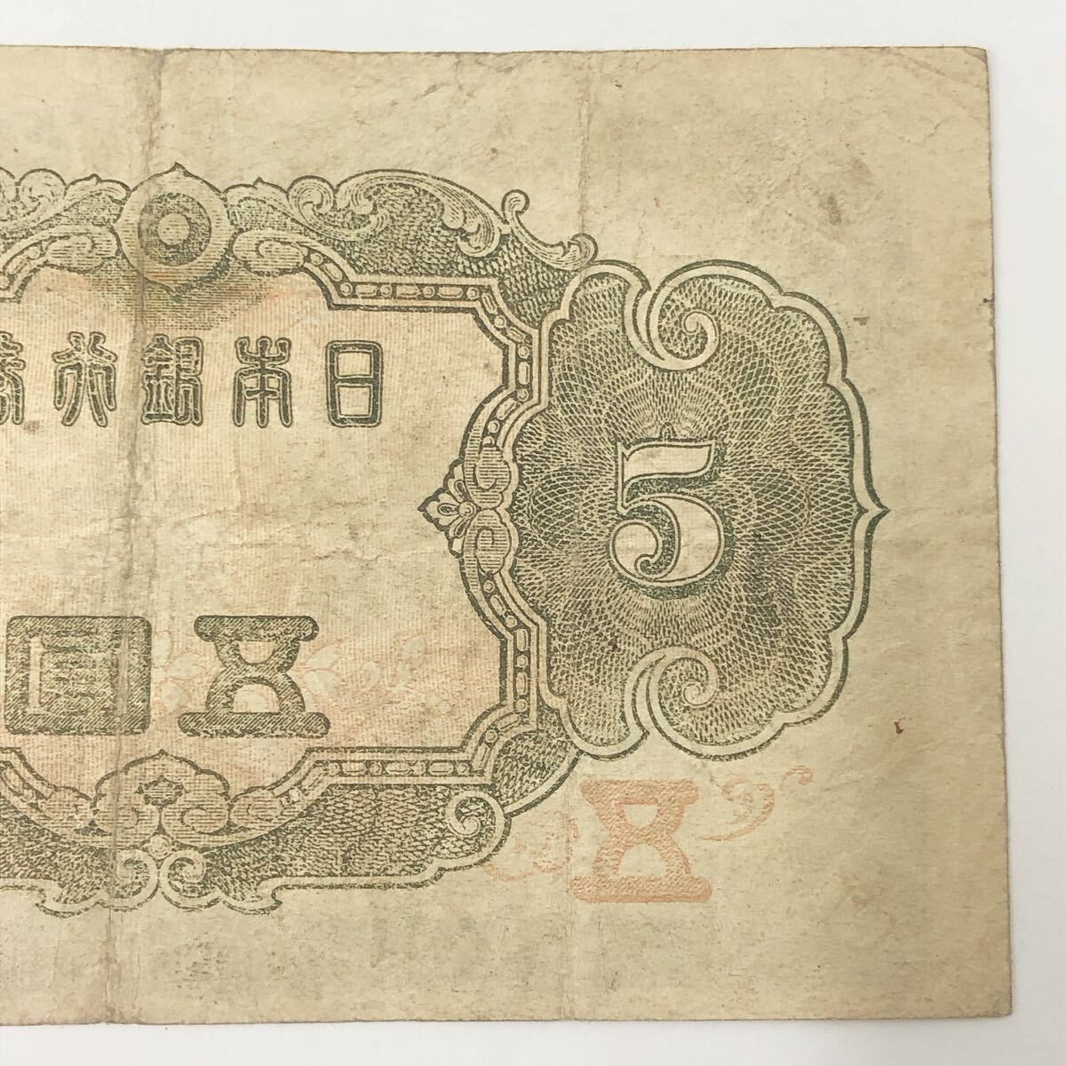 ★2-0923 旧紙幣 菅原道真 改正不換紙幣5円 4次5円札 五圓札 五円札 日本銀行券 紙幣 古銭 横13.2cm 縦7.6cm