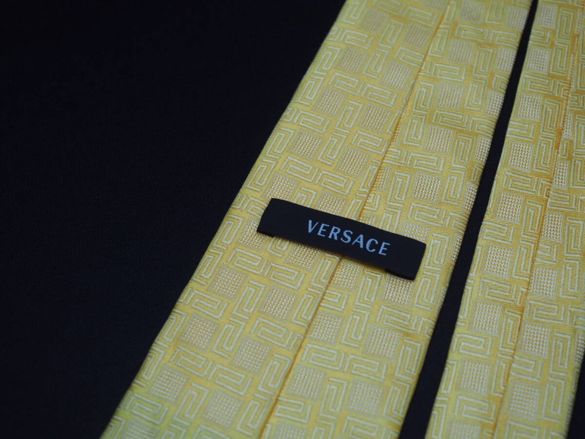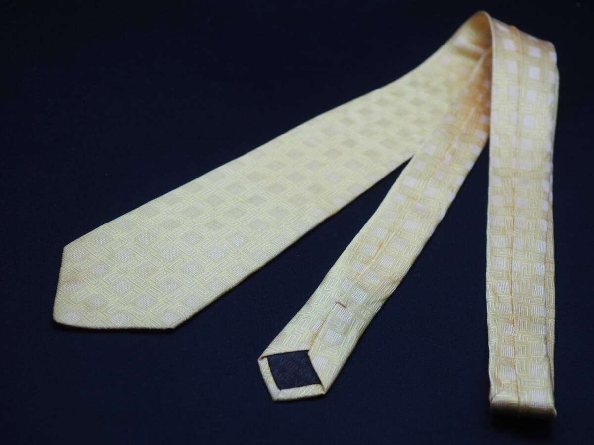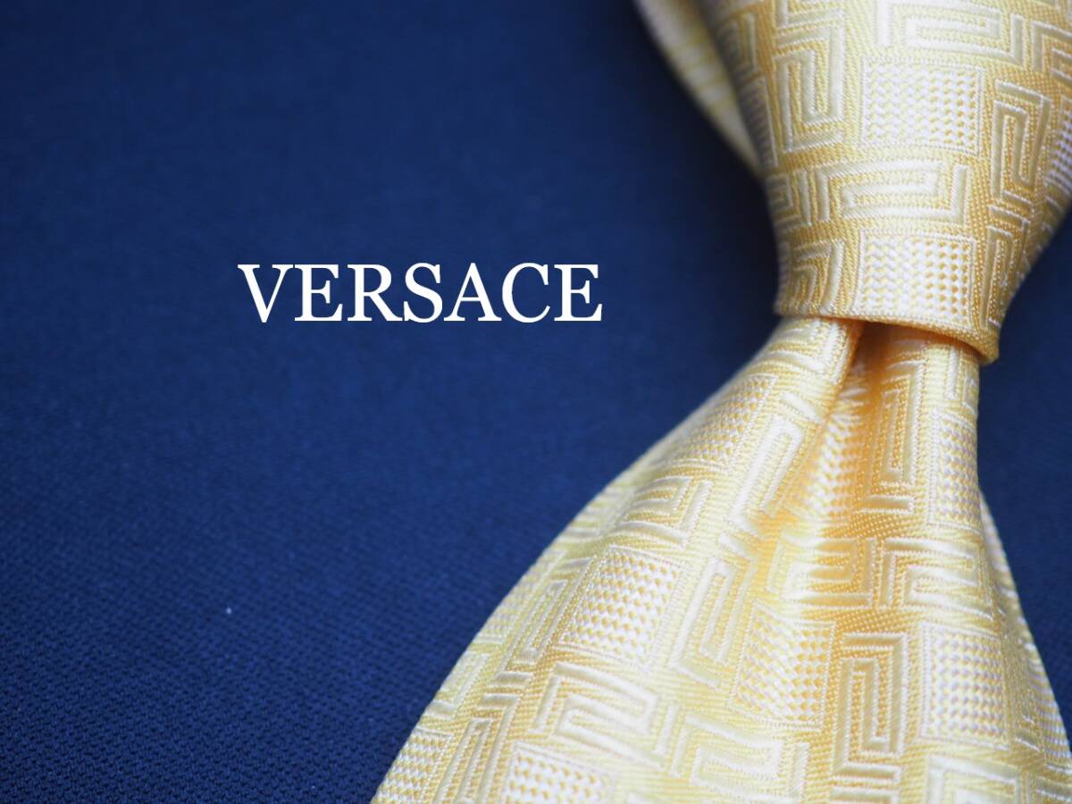 美品【VERSACE ヴェルサーチ】 F2162 黄系 SILK ブランド ネクタイ 古着 良品 転売 仕入