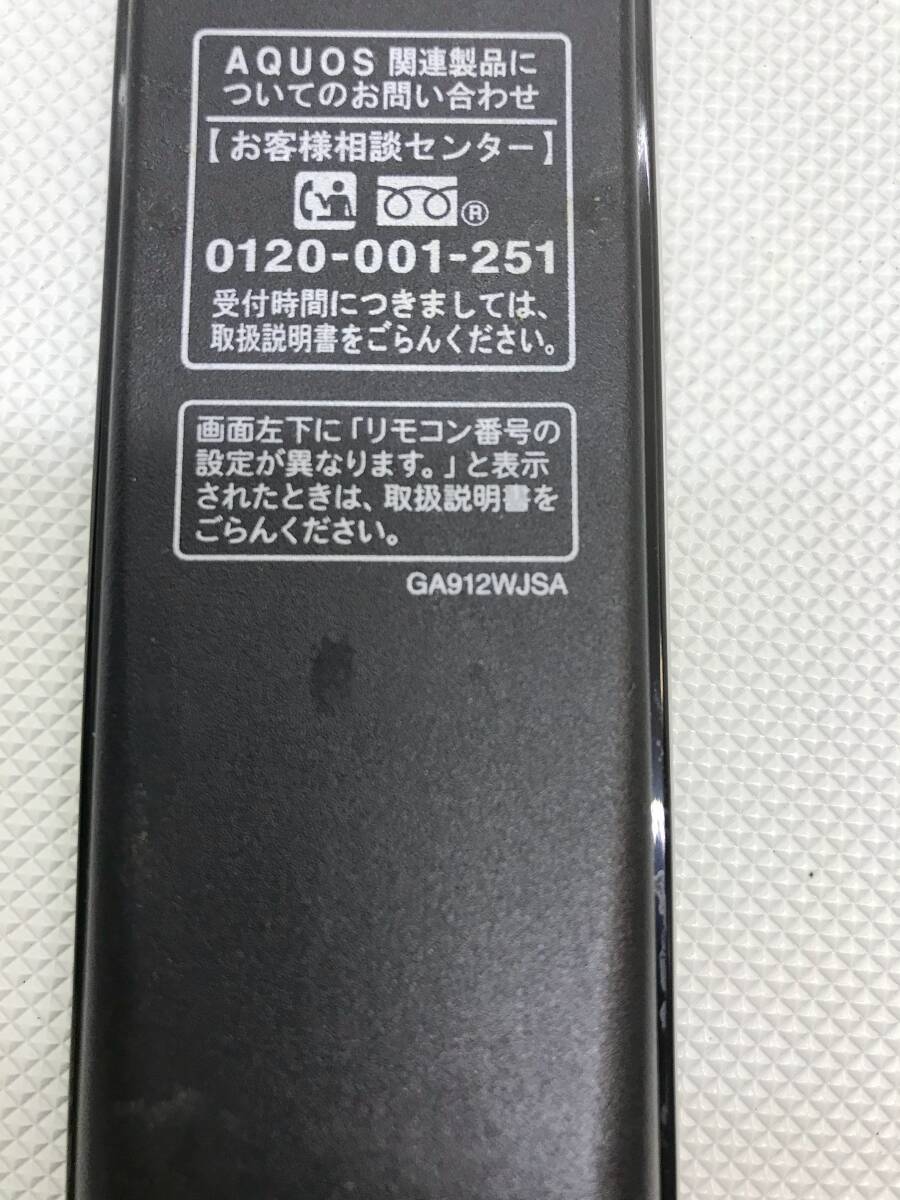 R68※ SHARP シャープ GA912WJSA テレビリモコン【保証あり】 240610