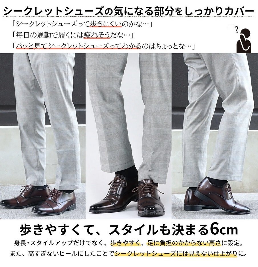 大好評 ・インソール搭載で自然に+6cm身長アップ! 外羽根スワールモカタイプの シークレットビジネスシューズです。 味のあるムラ加工が高級感漂う大人の雰囲気を演出。 靴底は滑りにくいソールを使用、ゆったりと履ける幅広3Eなどビジネスマンにとってうれしい機能が詰まっています。 ジールマーケットヤフーショッピング店でも大人気モデル! |