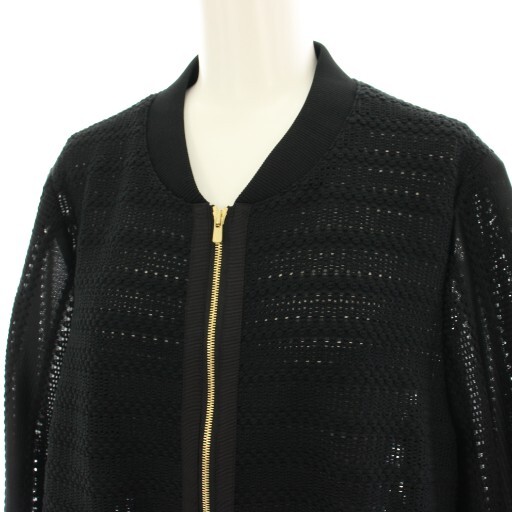 レリアン Leilian レースブルゾン ジャケット ニット ジップアップ シアー 13+ 黒 ブラック SA-1000586 /HN レディース