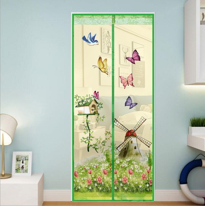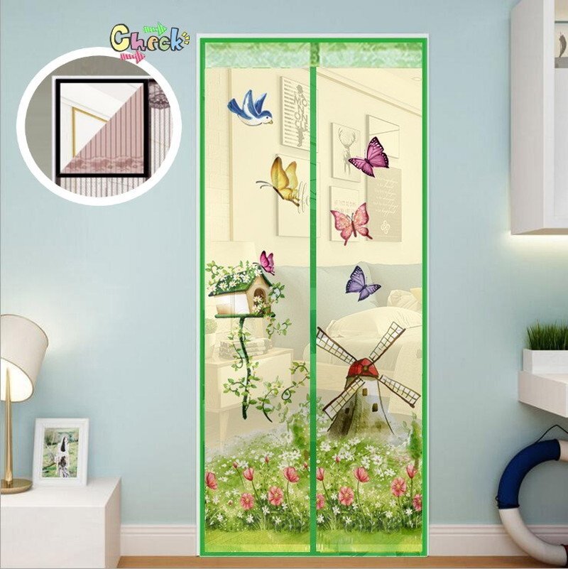 自動開閉☆どこでも設置OK!網戸カーテン 100cm×210cm マグネット 蚊 害虫 マジックテープ 目隠し 虫よけ ネット I-042