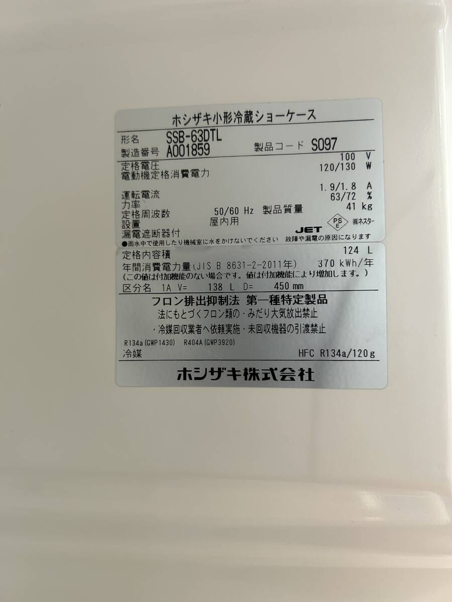 r250917-1 2021年式 ホシザキ 小形冷蔵ショーケース SSB-63DTL