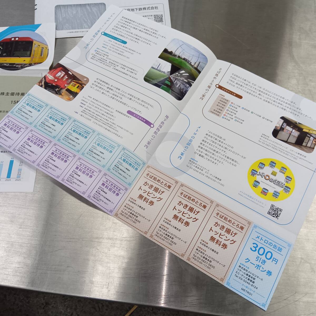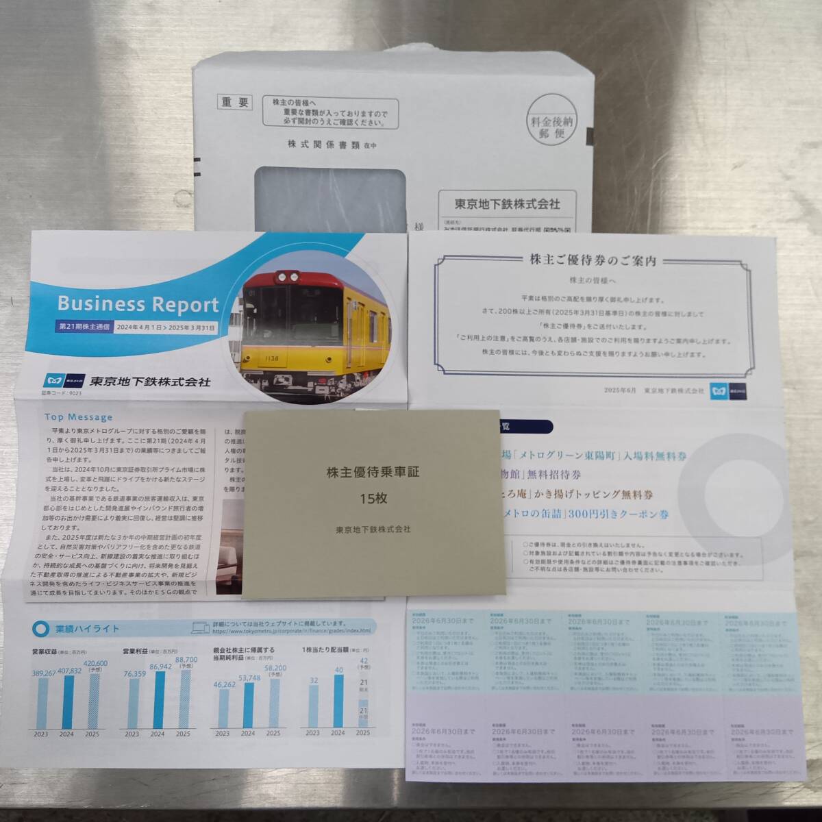 ■東京地下鉄・株主優待「優待乗車証15枚・割引クーポン冊子」