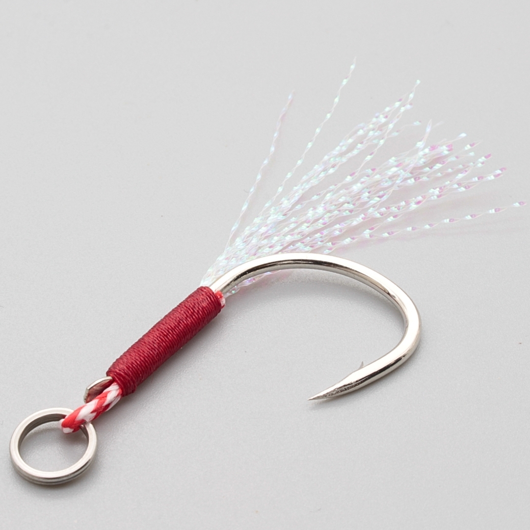 【送料無料】高炭素鋼 シングル アシストフック #16 10本セット ジギング メタルジグ 伊勢尼針 ティンセル スプリットリング付き