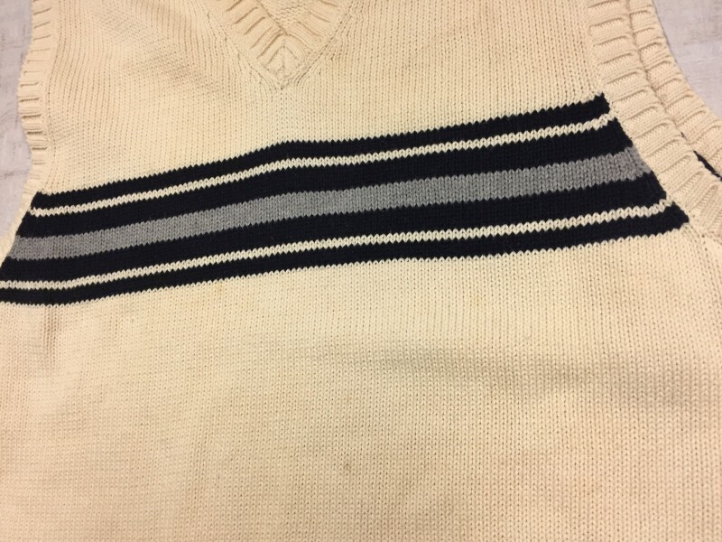 J.CREW ジェイクルー アメカジ トラッド 90s オールド 古着 パネルボーダー コットンニット ベスト メンズ 綿100% S アイボリー です。