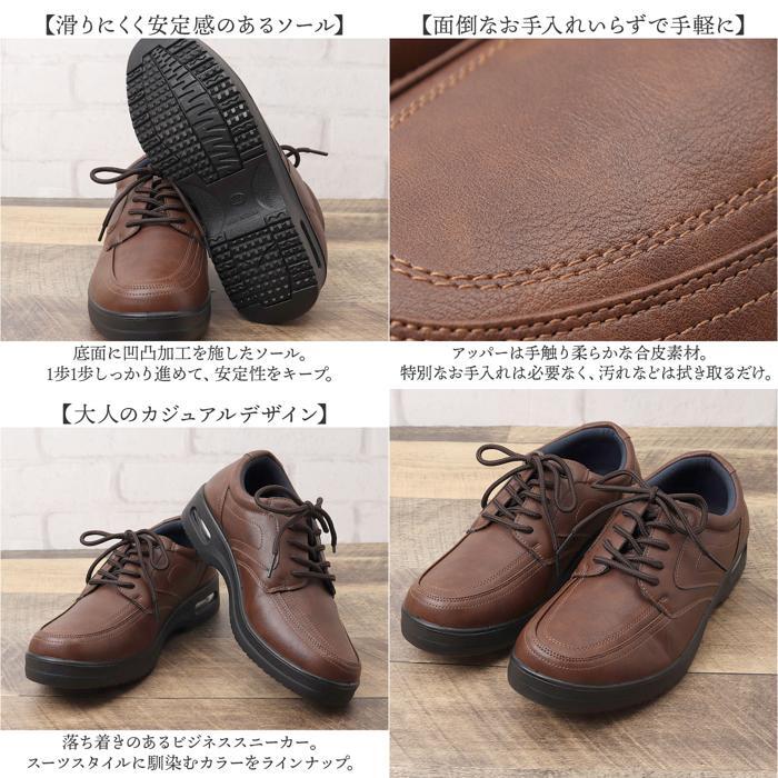 商品説明 | ・・【足に優しくストレスフリー】 ・クッションインソール&エアクッション設計!「Arnold Palmer ビジネスシューズ」。 ・【足裏を優しく受け止めるインソール】 ・心地よいクッションで、長時間履いていても疲れにくい!快適な歩行をサポート。 ・【負担を軽減するエアクッション】 ・かかと部分の空気の層がクッションの役割を果たし、歩行時の衝撃を吸収。クッション性アップ! ・【軽やかで弾むように歩けるつくり】 ・足さばきがスマートな軽量設計。アクティブに動く日の心強い味方に。 ・【フィット感を高めるシューレース】 ・紐の結び具合で多少のサイズ調節が可能。シューズと足が一体化するような着用感。 ・【締め付けのない幅広タイプ】 ・ゆったり幅を設けたシューズ。幅広で靴が窮屈に感じる方におすすめ。 ・【屈曲性があり、歩きやすさが向上】 ・つま先部分が足の動きに合わせて柔軟に曲がる、上向き形状。蹴り上げやすくつまずきにくい! ・【滑りにくく安定感のあるソール】 ・底面に凹凸加工を施したソール。1歩1歩しっかり進めて、安定性をキープ。 ・【面倒なお手入れいらずで手軽に】 ・アッパーは手触り柔らかな合皮素材。特別なお手入れは必要なく、汚れなどは拭き取るだけ。 ・【大人のカジュアルデザイン】 ・落ち着きのあるビジネススニーカー。スーツスタイルに馴染むカラーをラインナップ。 |