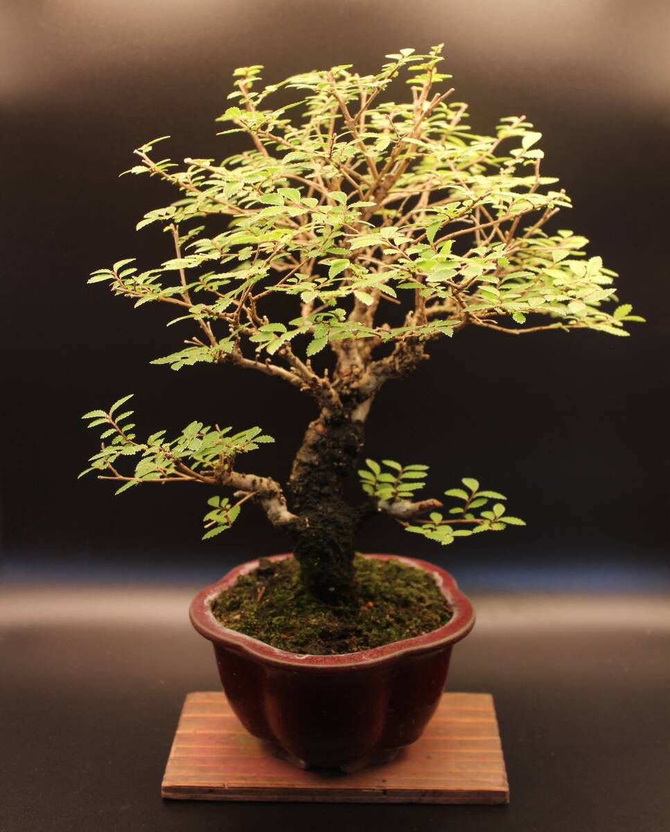 こちらは、細かく枝分かれした枝としっかりとした樹冠を持つ成熟したチャイニーズエルム(ニレ科)の盆栽素材です。風格ある幹肌と自然な曲がりが特徴で、樹齢を感じさせる一品です。すぐに鑑賞できる樹をお探しの方や、今後の仕立てを楽しみたい方に最適です。